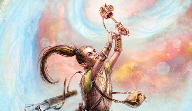“Tasslehoff and the Device of Time Journeying”, is an illustration commissioned by the Dragonlance Nexus for a new upcoming edition of “Tasslehoff’s pouches of Everything”, a game manual converting Dragonlance to the 5th edition of Dragonlance.