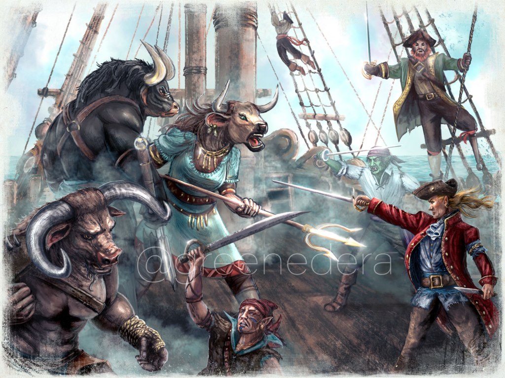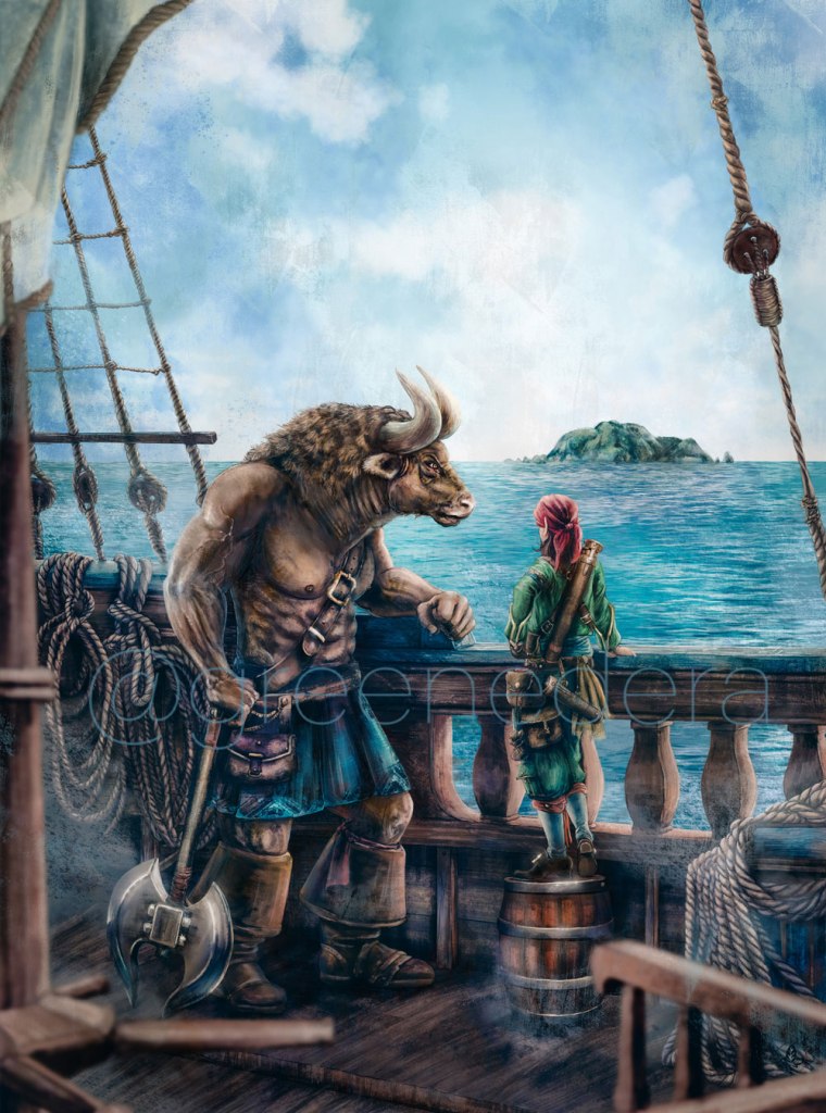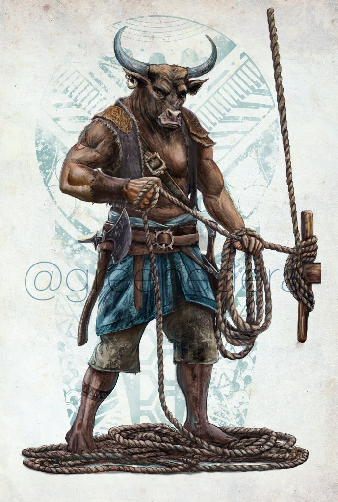 ๐ The manual “The Journals of Kaz the Minotaur – The Lost Colony” contains 6 original paintings by me, and various decorative elements.