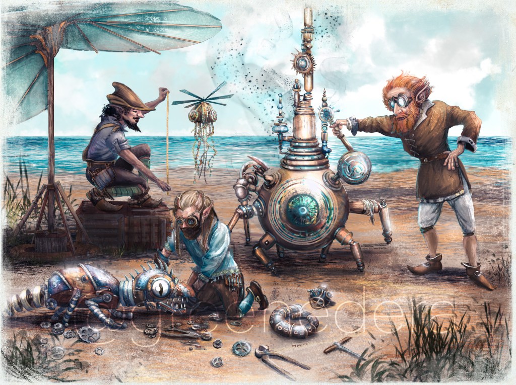 ๐ My cover art and more than 30 illustrations in the manual “Tasslehoff’s pouches of Everything”, now DM Guild