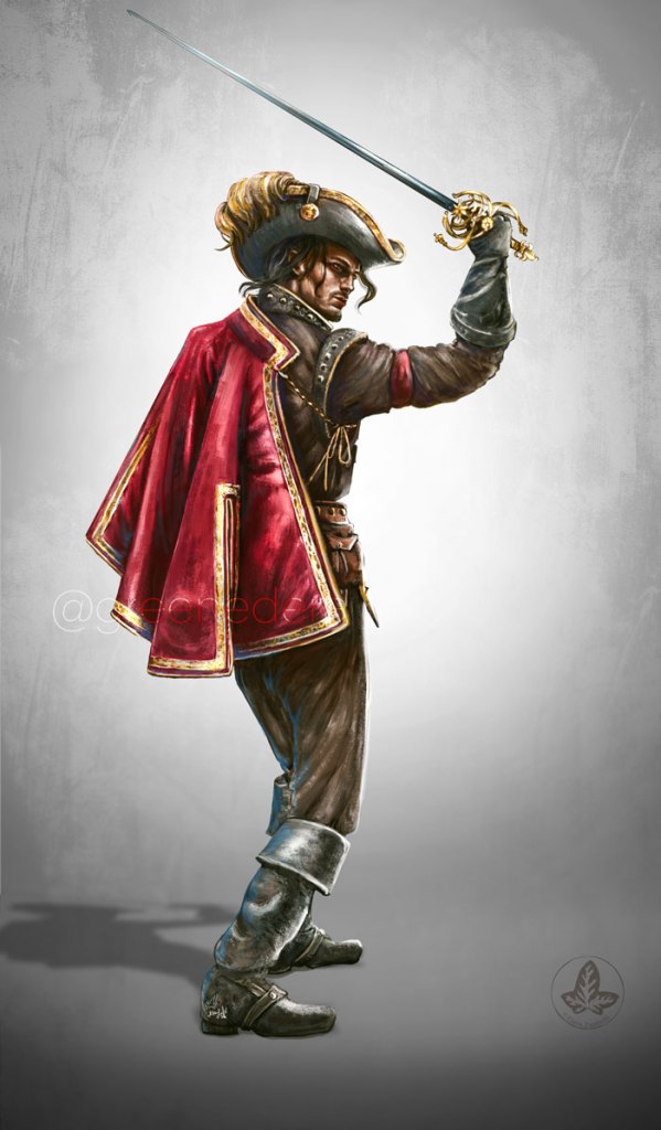 The illegitimate son of a nobleman, Alejandro likes to appear courageous and charismatic. He smiles easily, tries to make the most of every situation, and is ready to promise more than he can do. Which means, he often gets into Trouble. Deep down he’s a bit of a coward, and he’s certainly not the type to sacrifice himself in some idealistic heroical deed: saving his own skin comes first. However he is a good guy and if he can help someone, he will.