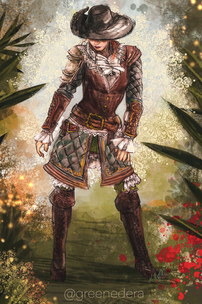My sketch portrait of the character Aurelia De Vespe, based on the teaser materiael, published just before the DLC of the videogame GreedFall was published. Her outfit is amazing, so I portrayed her in a lace-themed sketch.