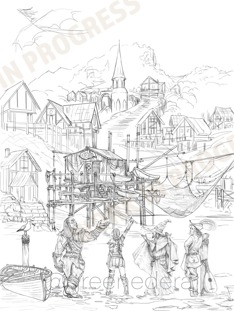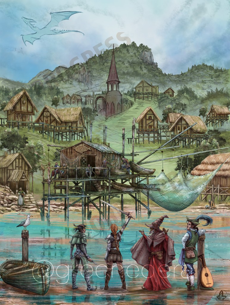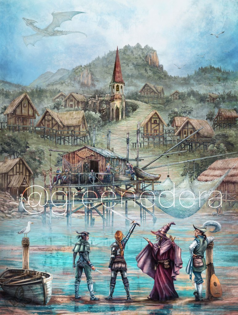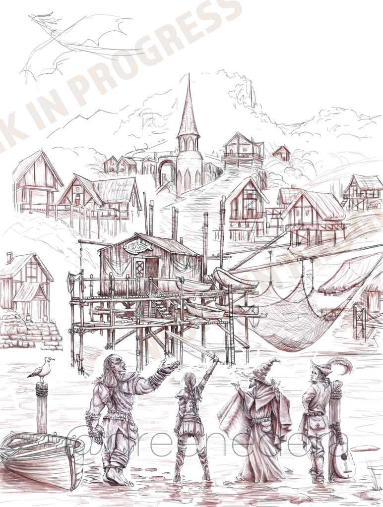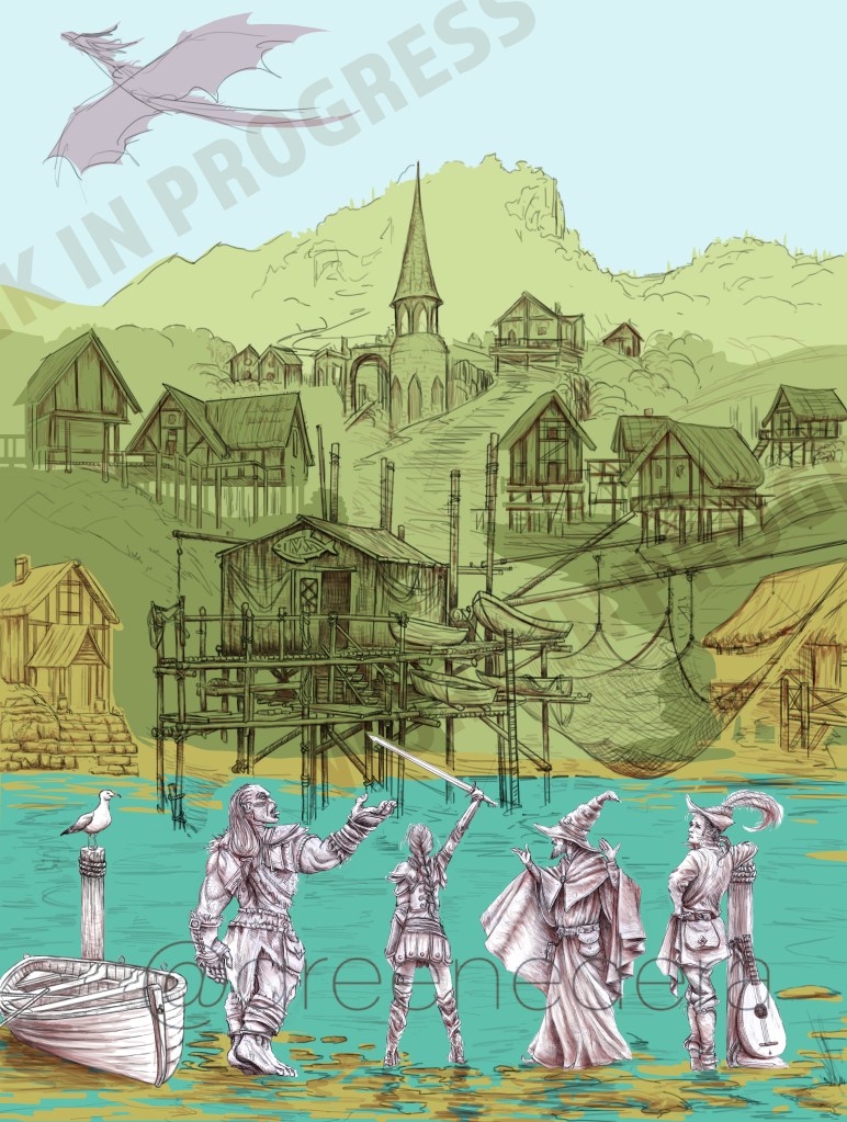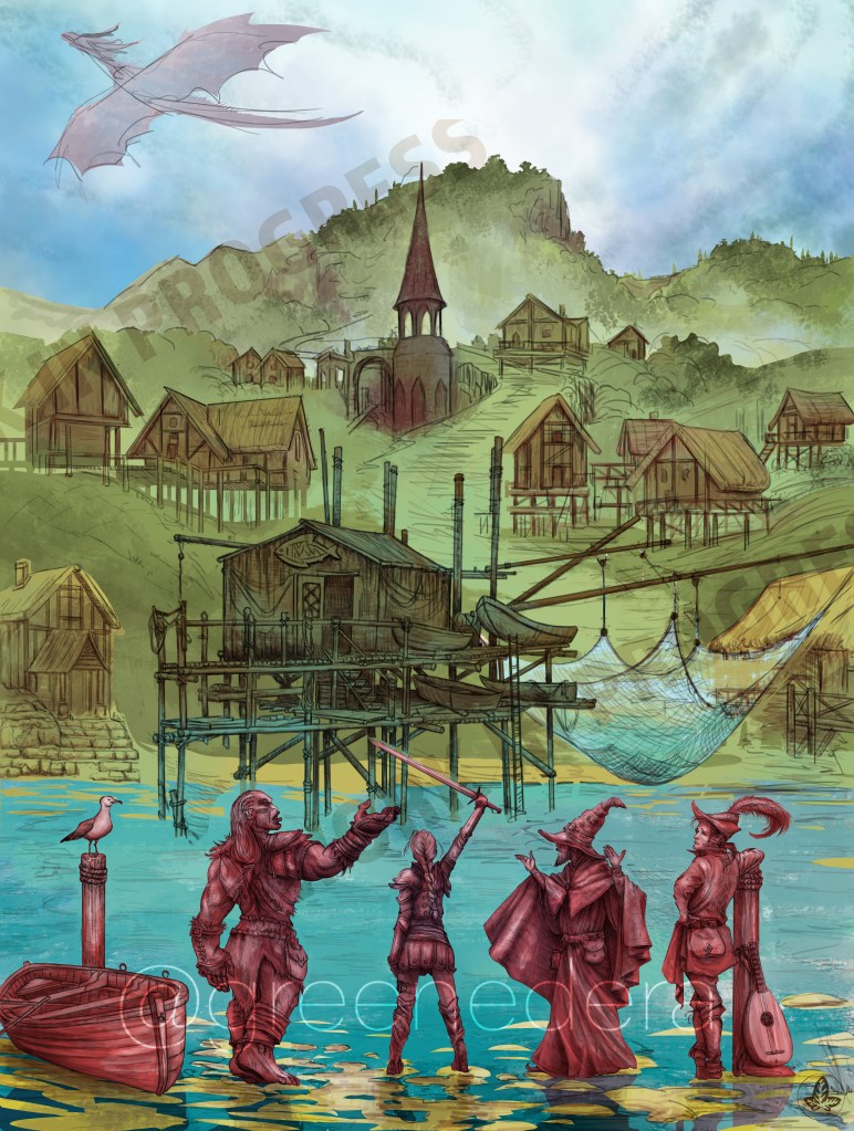💧🎨 My new painting, cover art for the new DnD 5 adventure by the “Dungeon Masters of None” team: 1st level characters, a coastal village, an old legend and many mysteries!