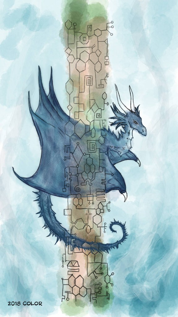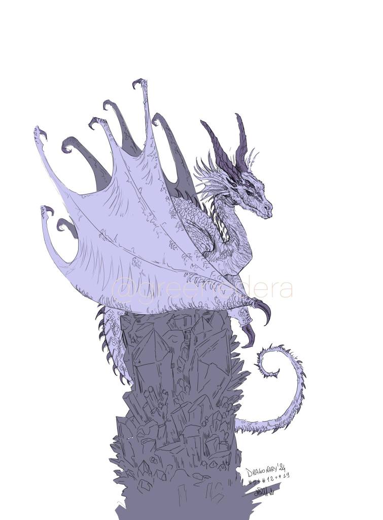 “Crystal cave”, 5th new dragon of 2024, created during the #dragonary challenge. An old sketch (dating 2017? nvm), new pencil sketch, digital redraw and painting.