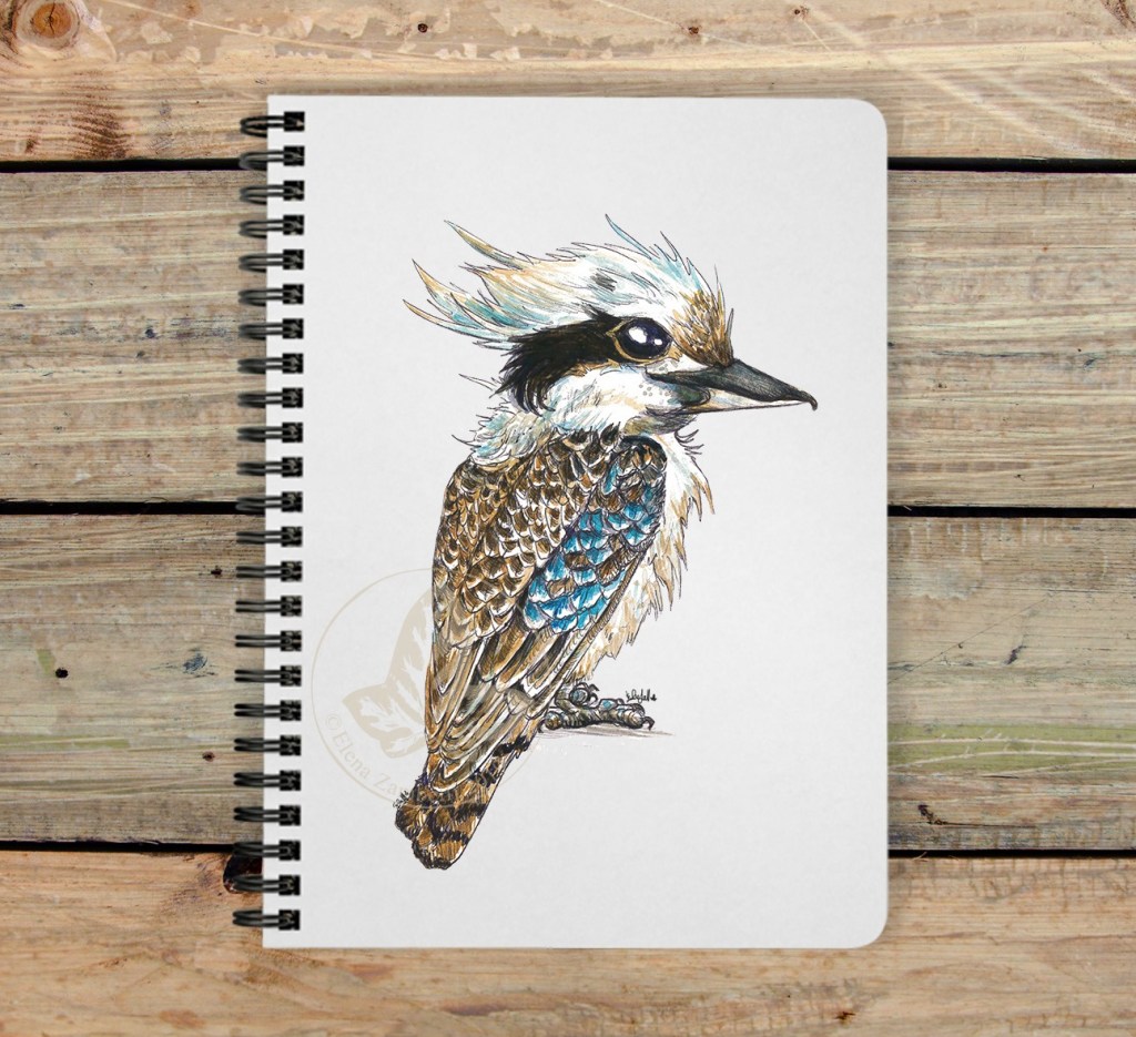 Kokaburra sghignazzante / laughing kokaburra / 10×15 cm watercolor and pen on paper + digital correction- Cutie birdie series //