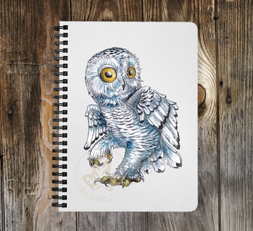 Snowy owl / Bubo scandiacus/ gufo delle nevi o civetta delle nevi 10×15 cm watercolor and pen on paper + digital correction- – Cutie birdie series //