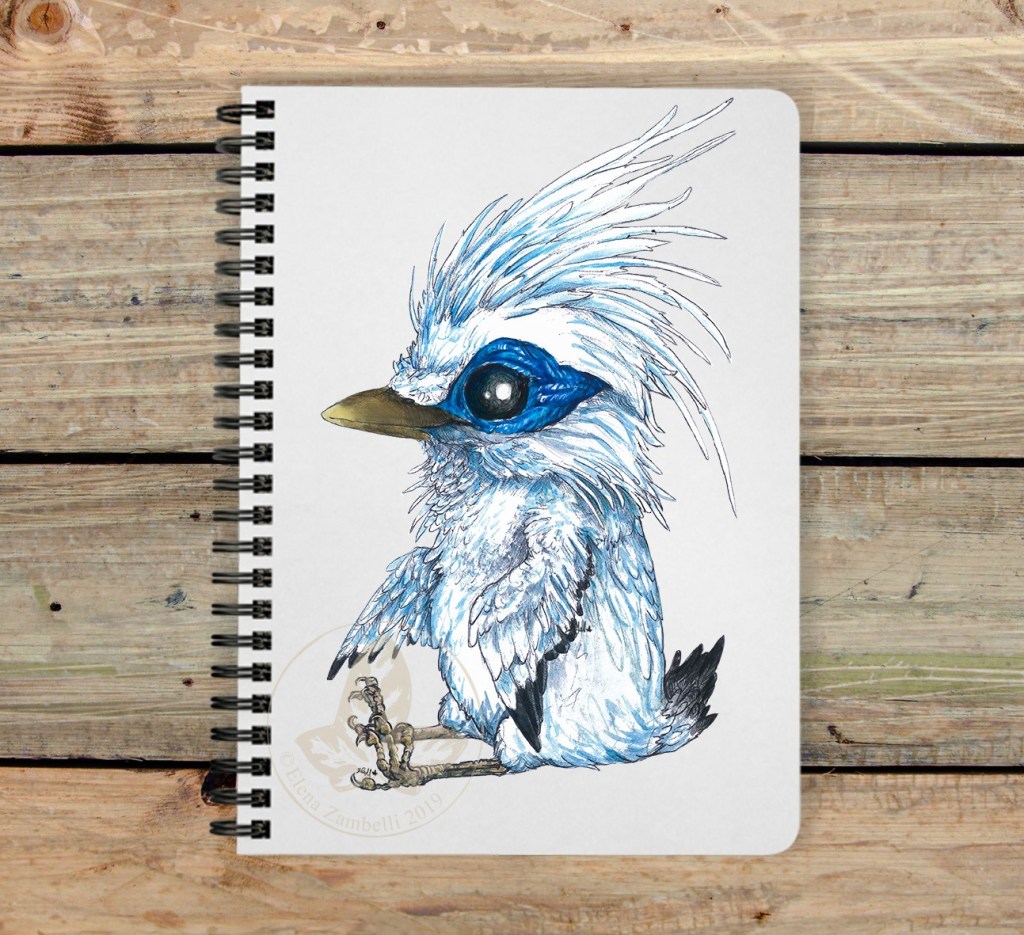 Storno di Bali / Bali myna / 10×15 cm watercolor and pen on paper + digital correction- Cutie birdie series (c) elenazambelli June 2019 // #balistarling #balimyna #bali #starlings #myna #starlingbird #storno #birds #avians #watercolor #oc #watercolorart / #instabird