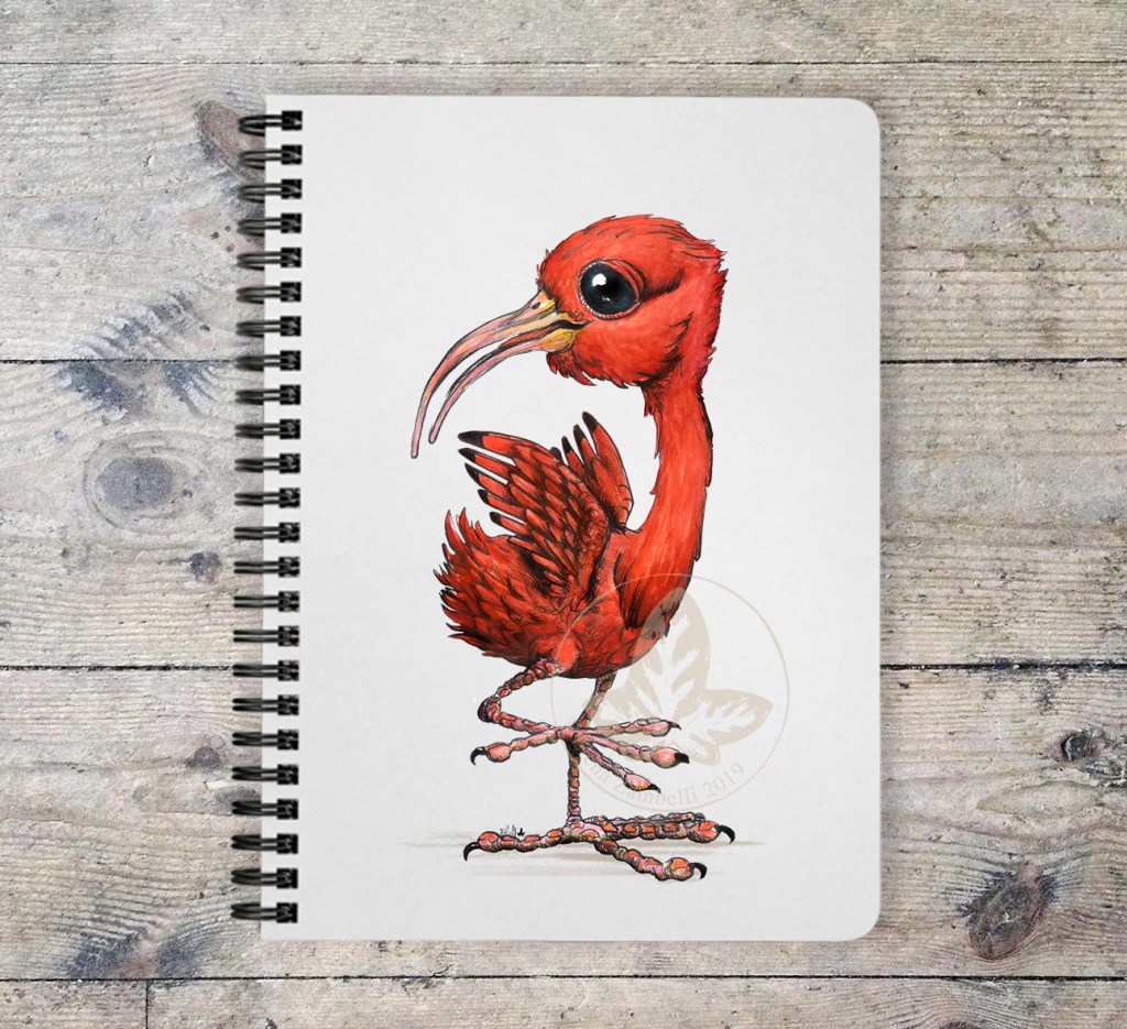 Scarlet ibis – Eudocimus ruber – Ibis rosso 10×15 cm watercolor and pen on paper + digital correction – Cutie birdie series //