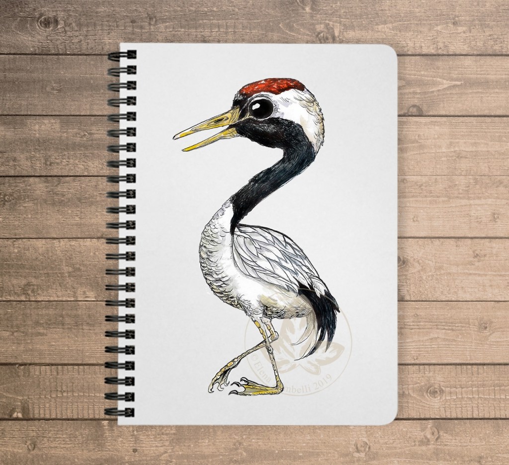 Grus japonensis – gru della Manciuria – red-crowned crane 10×15 cm watercolor and pen on paper + digital correction- Cutie birdie series //