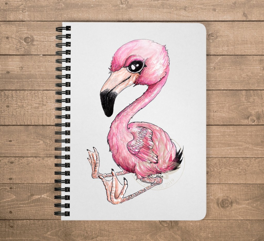 Flamingo 10×15 cm watercolor and pen on paper + digital correction – Cutie birdie series //
