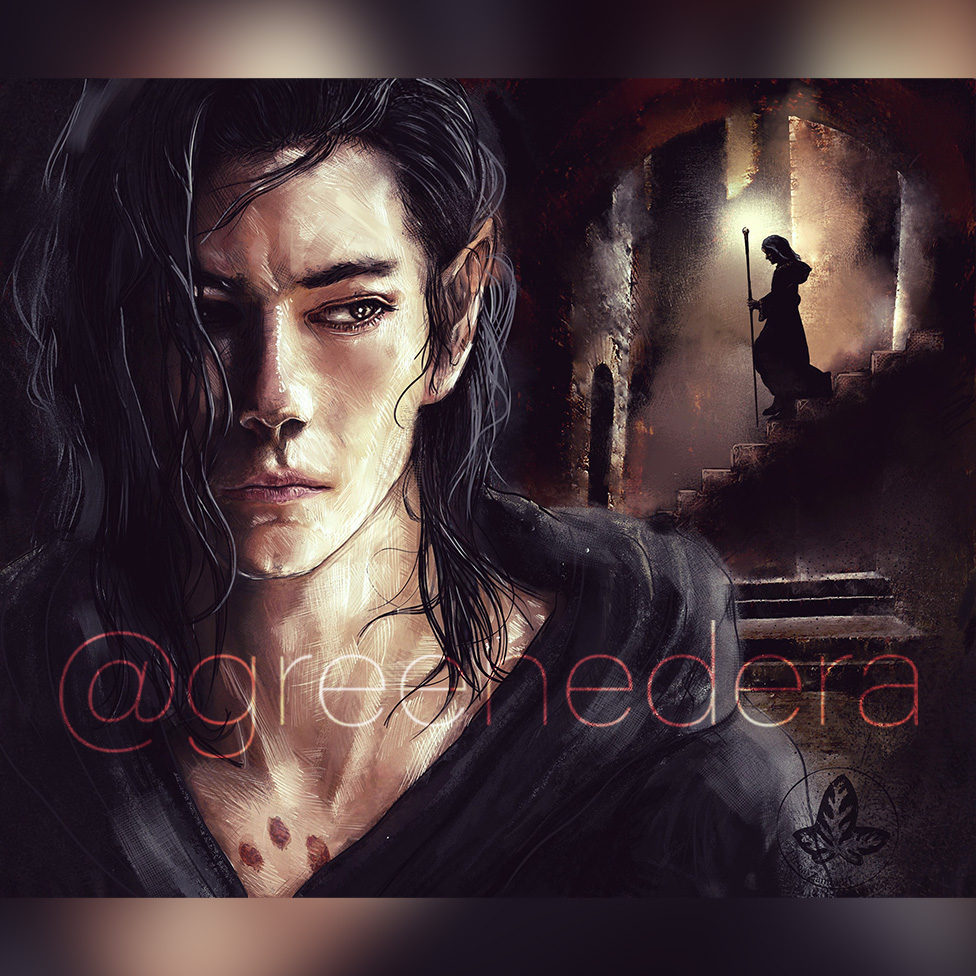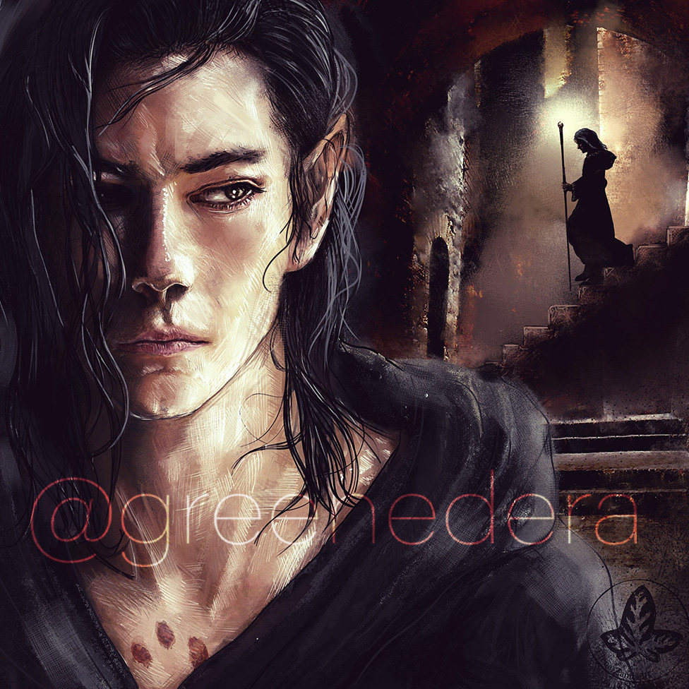 In this fanart, I tried to catch Dalamar’s beaten-up expression after Raistlin punished the dark elf’s duplicity by inflicting five painful wounds on his chest, wounds that will never heal.