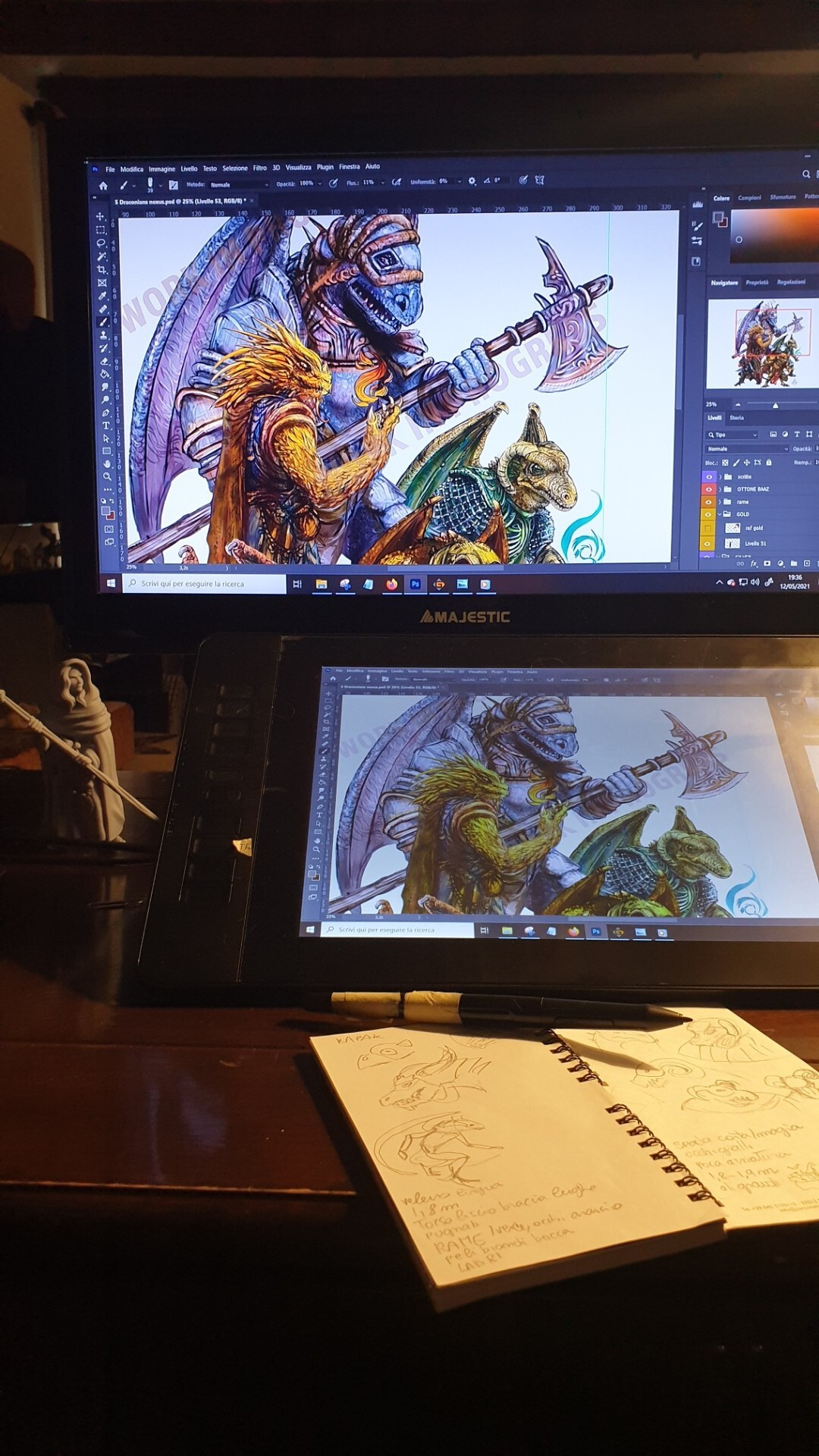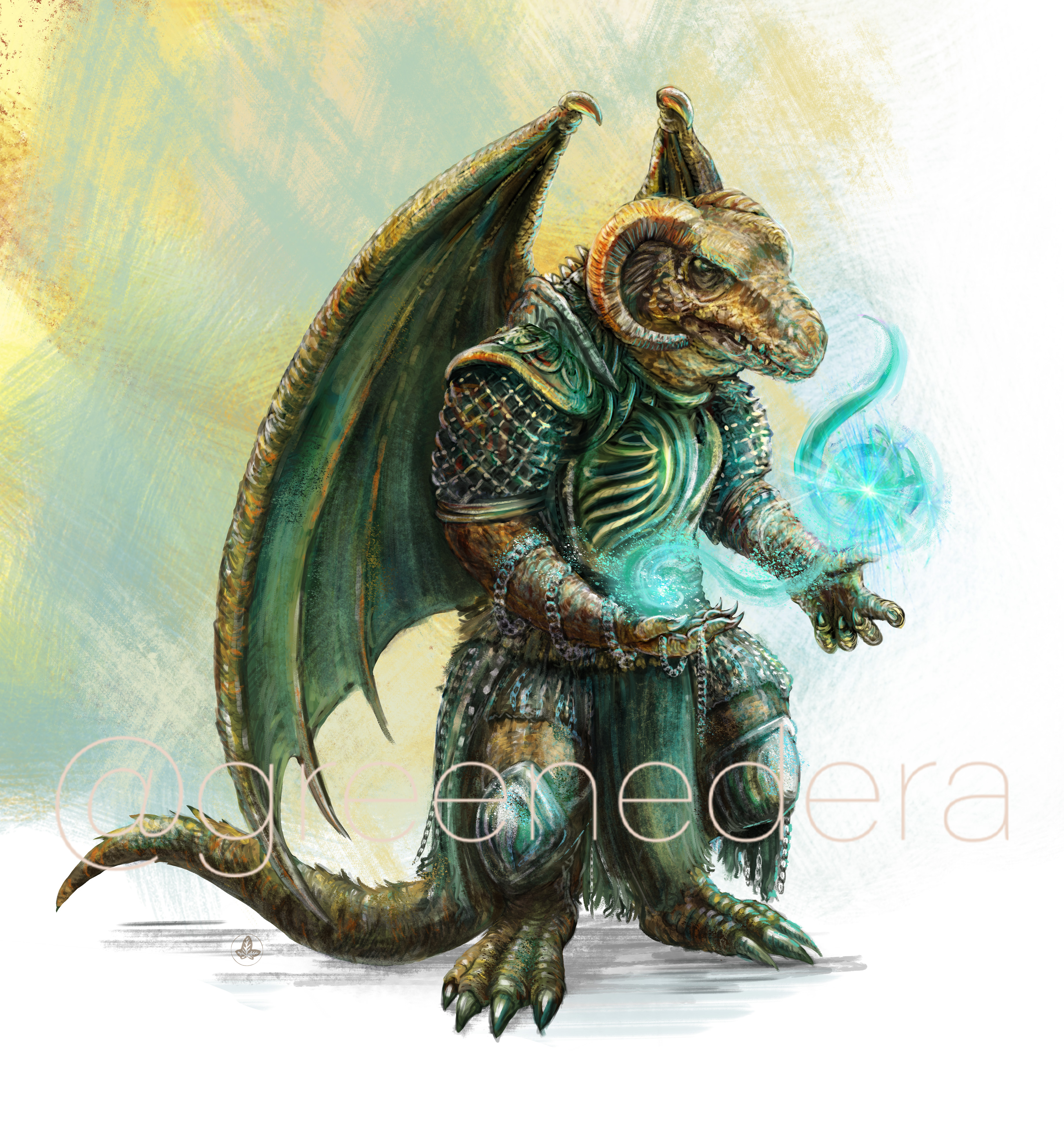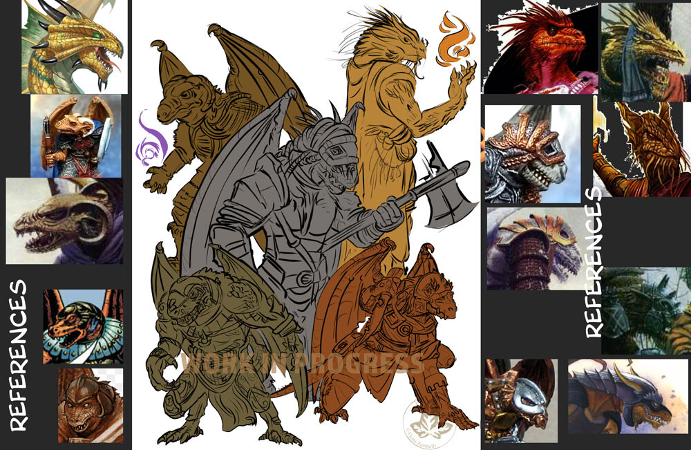 The great fantasy artists of the past decades painted the 5 races of draconians in various possible forms; for this portrait, I used as reference for the shape of the different races the miniatures of the 80s and Keith Parkinson’s beautiful painting of the draconians in the snow: these are the paintings I grew up admiring. Getting the chance to paint them for the Dragonlance Nexus was a dream come true, and the beginning of a wonderful collaboration.