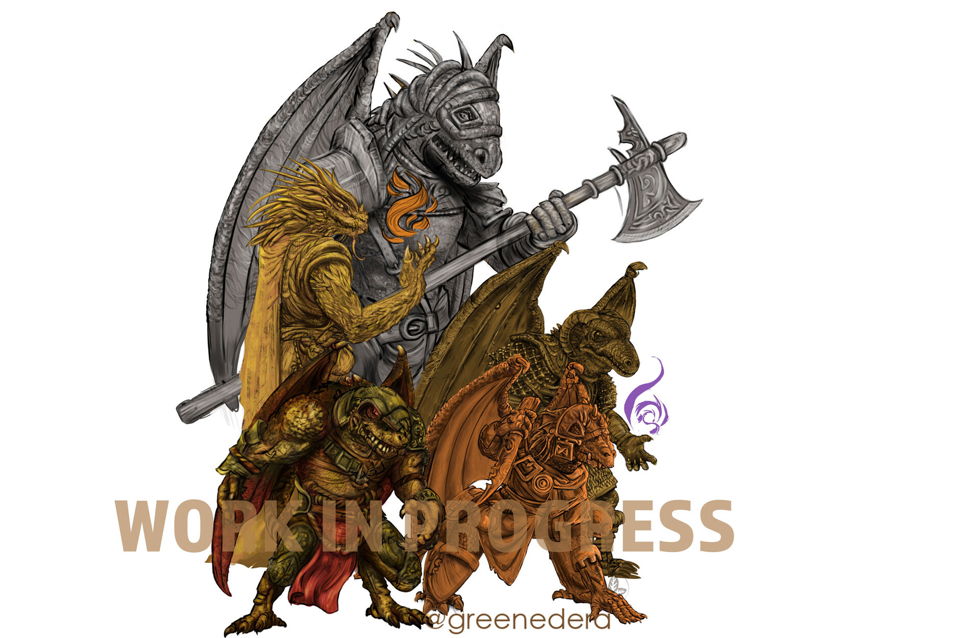 Portrait of all 5 draconian races of Ansalon for the Dragonlance Nexus. Give some love to these scaly boys that get kicked around repeatedly by the Heroes of the Lance!