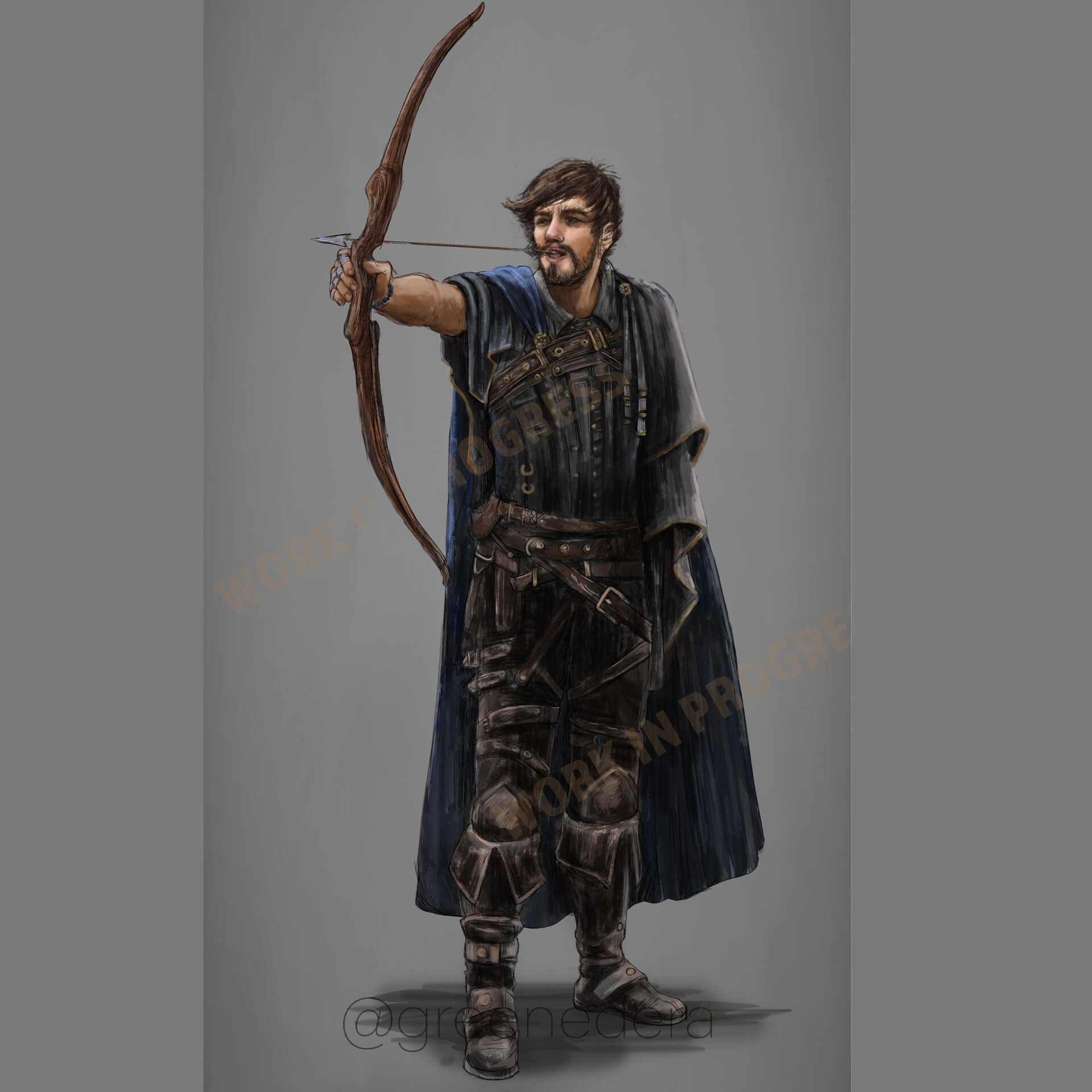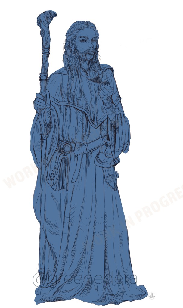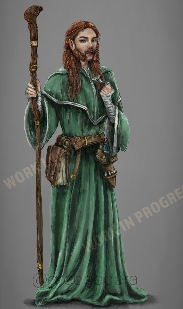 🎙Lasadh, Half-elf mage, so often playing with an ancient necklace. He has yet to take his Test of High Sorcery, and so many adventures await him. Played by Chops