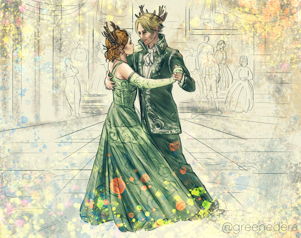 Just a masqued ball where the two cousin dance together, their costumes making them resemble the natives of Teer Fradee. From “The Diaries of Jeanne De Sardet” on Ao3.