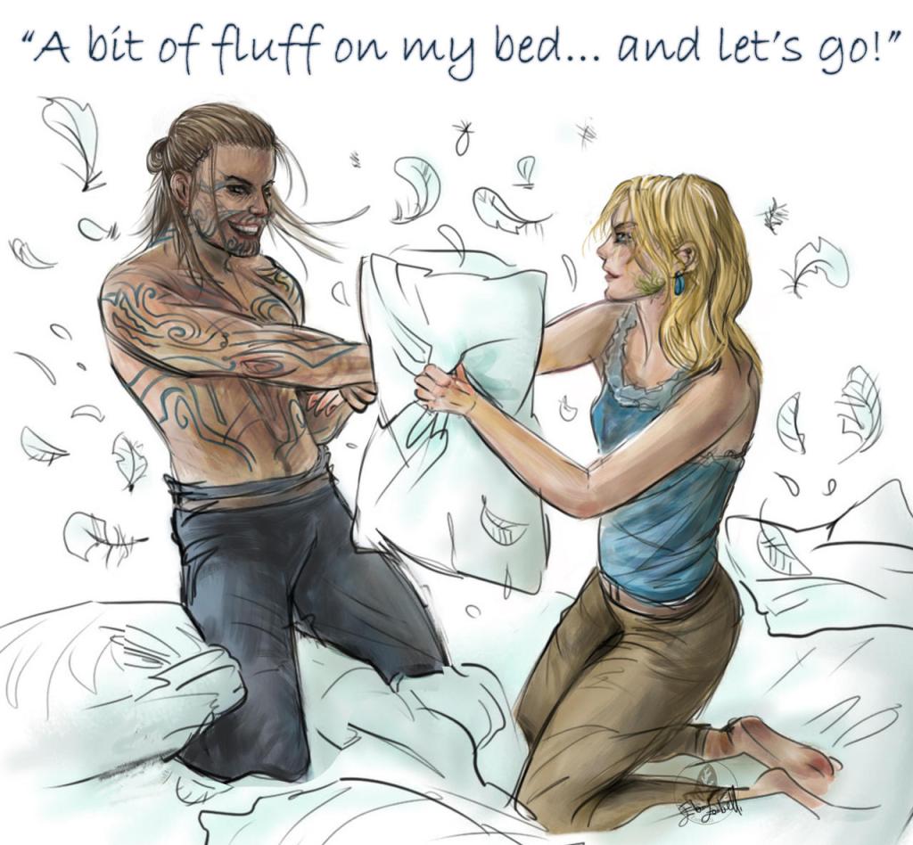 GreedFall – “A bit of fluff on my bed… and le’ts go!” silly sketch Vasco x Pheobe De Sardet – I continue to earn my place in hell with meme fanart – just enjoy the eyecandy