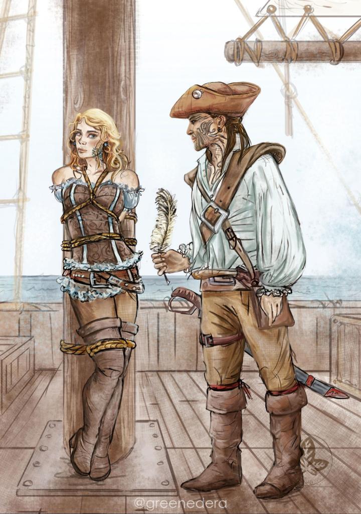 #greedfall fanart: #captainvasco and lady #desardet. “Sea and love both share a bitter bite (…) for neither are free from the tempest might.”