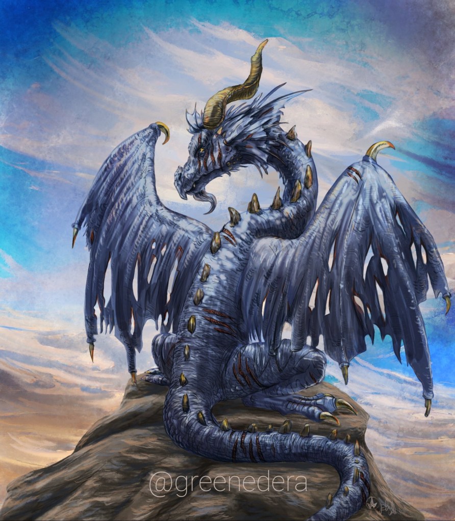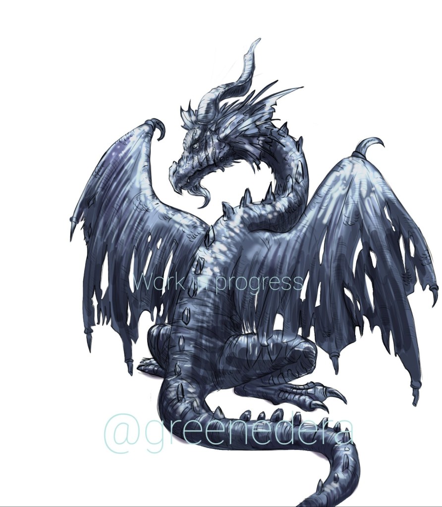 An injured dragon, full of scars. This is a redraw of an old sketch I was fond of, originally created during “Inktober 2019”.