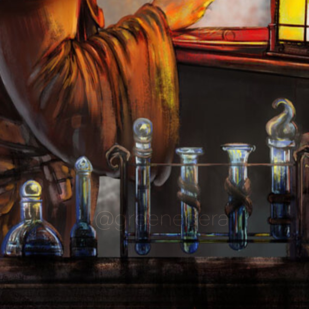 I discovered Greenedera’s art through a Facebook group the Dragonlance Nexus hosts. The piece was clever and whimsical, but had a hardline fantasy feel making it perfect to be on the cover for the gaming book we were planning to release. After that, it made the most sense to commission art directly from Elena. Her work has passionate energy that made our book, Tasslehoff’s Pouches of Everything, more beautiful with the dozens of commissioned art pieces she created. I can’t recommend Elena enough! She is patient, great to work with, makes deadlines and her art…