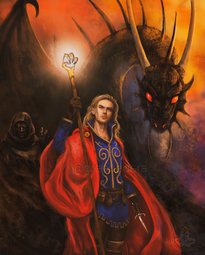 Magius is one of the most gifted and influential wizards in Krynn’s history, known for his striking appearance, sharp intellect, and hidden insecurities. A human from Solamnia, he was tall, handsome, and recognizable by his long blond hair and blue eyes. His lifelong friendship with the knight Huma shaped both their destinies, especially during the Third Dragon War, where Magius played a crucial role.