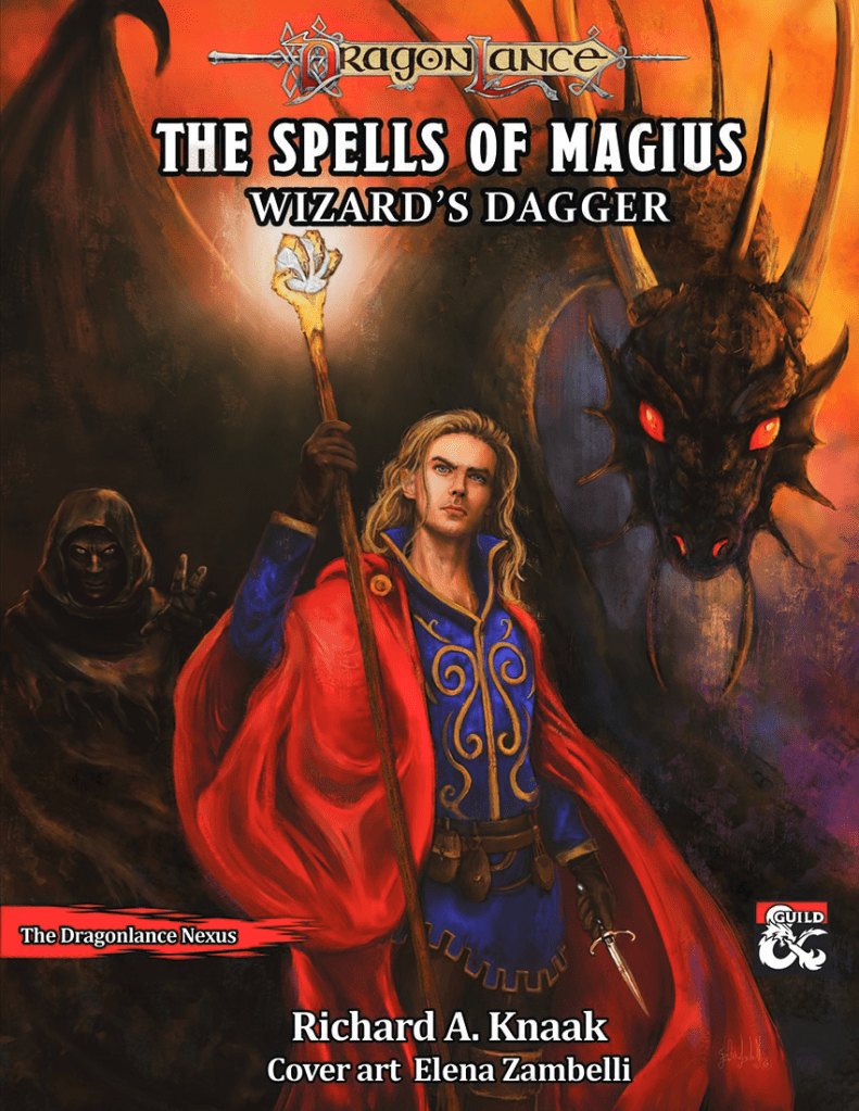 📕 Cover art for the manual “The spells of Magius: Wizard’s dagger” by the Dragonlance Nexus and Richard Knaak.