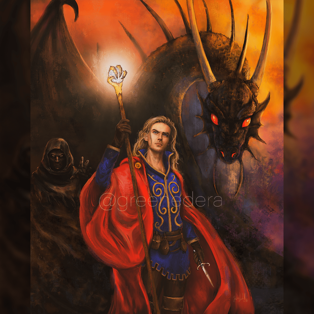 “Magius“, is my fanart illustration, commissioned by the Dragonlance Nexus for the project “The spells of Magius: wizard’s dagger”, a DnD 5 game manual which includes an adventure and a novelette by Dragonlance fantasy author Richard Knaak.