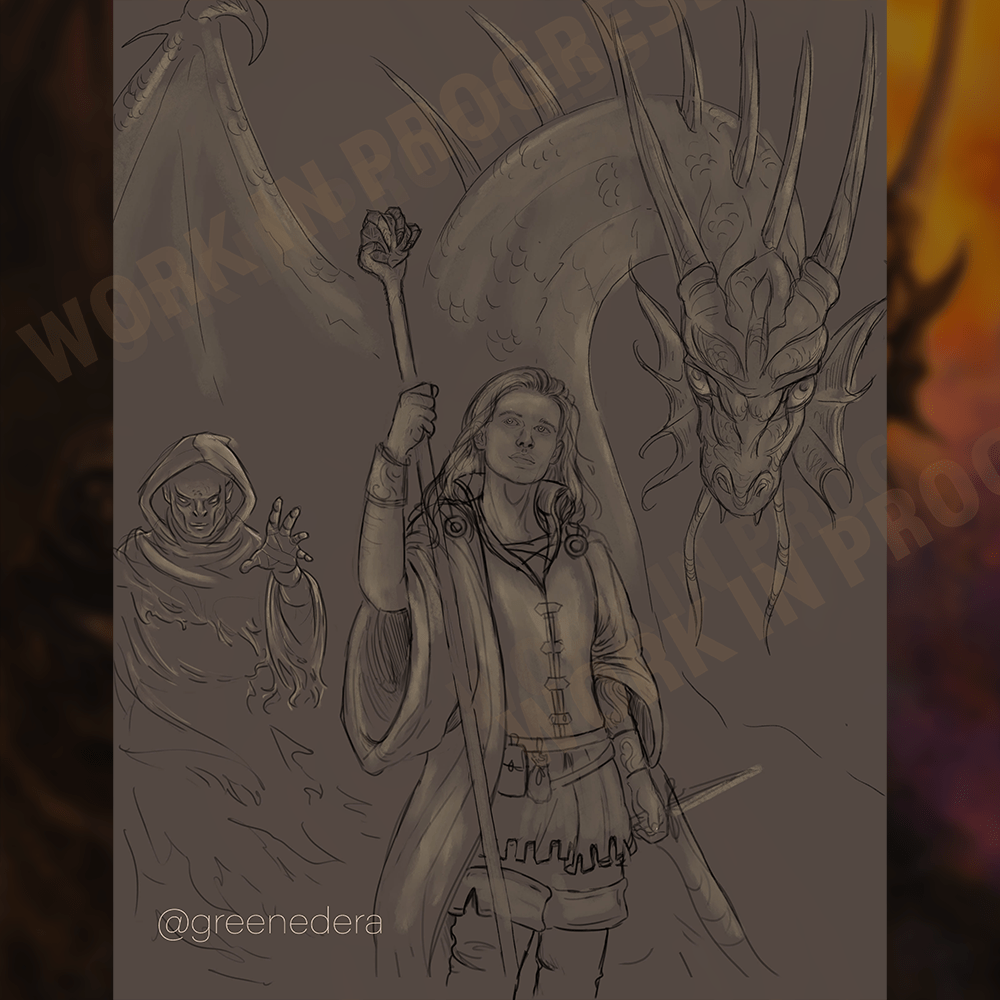 Digital sketch, reworked as a pencil and paper sketch, and colored again in digital with Cintiq and Photoshop. Painted between January and March 2026, published in April 2026.
