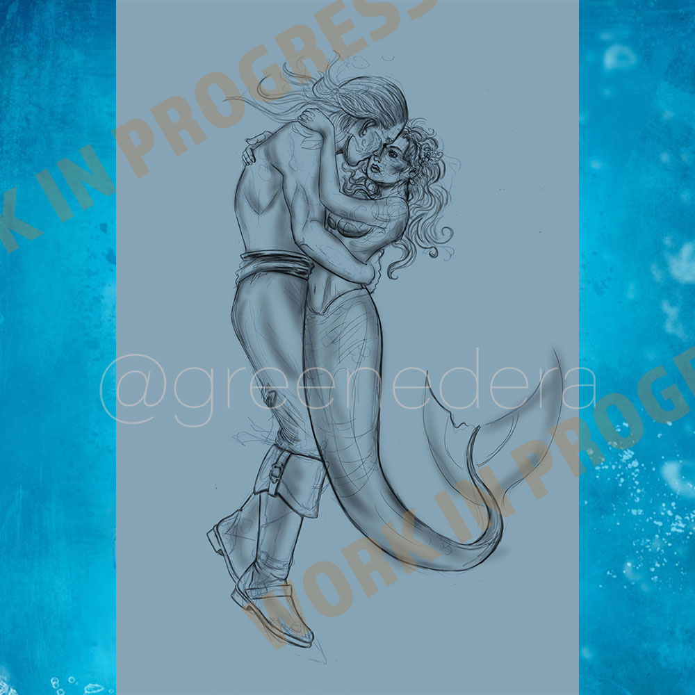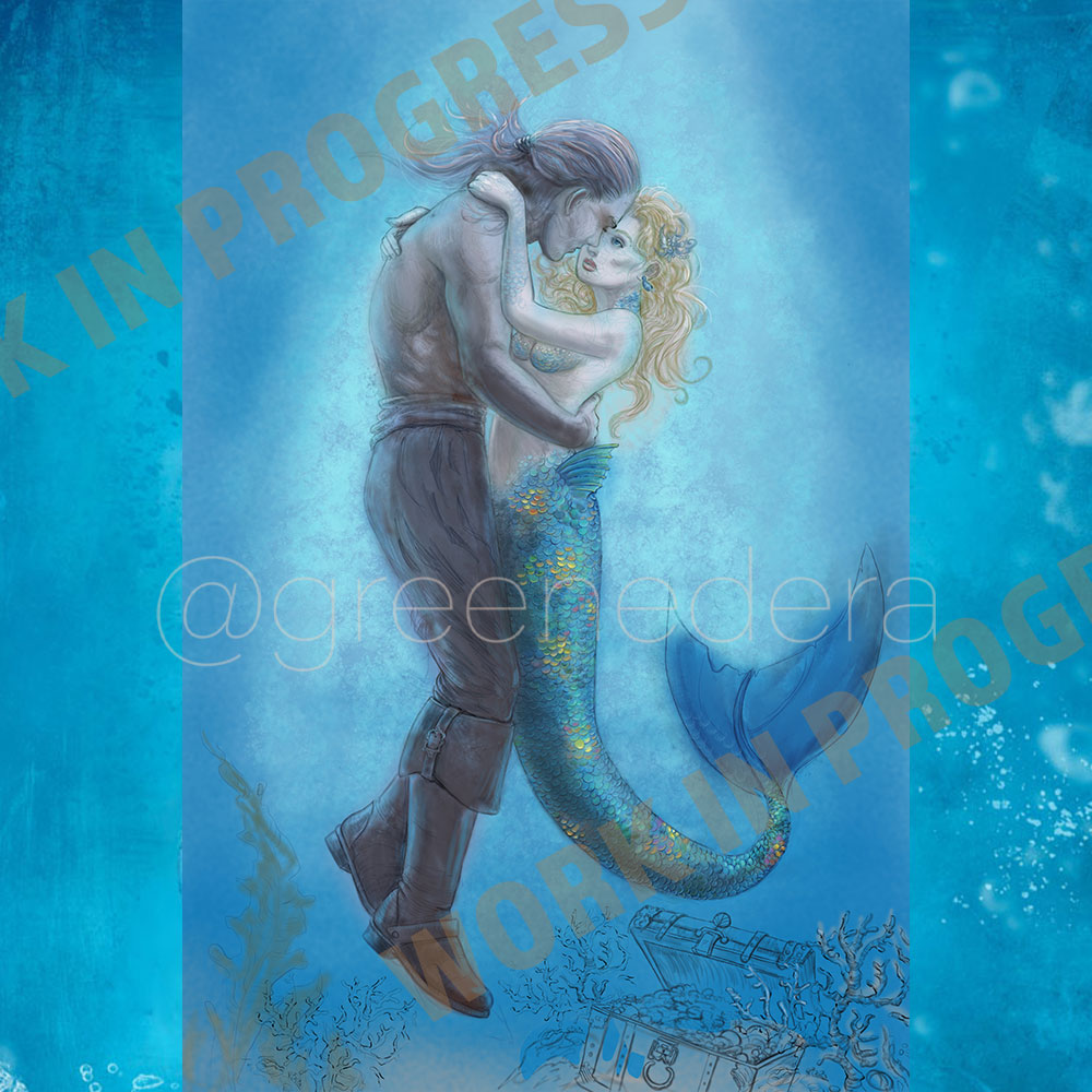 My painting, “Mermaid Dream”. A fanart commission for Merruschka, depicting the characters De Sardet and Vasco from the videogame GreedFall, in a special custom setting. Finished painting in September 2024, it is published on the web six months later.