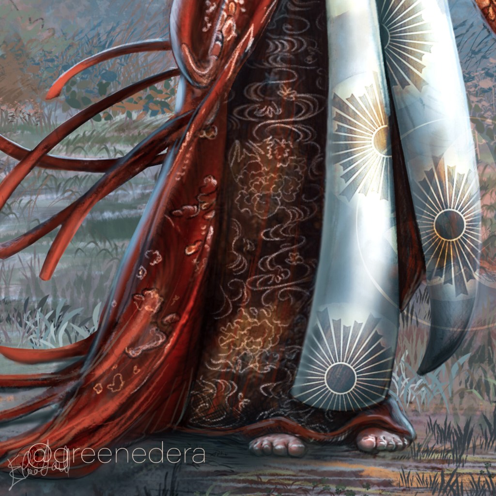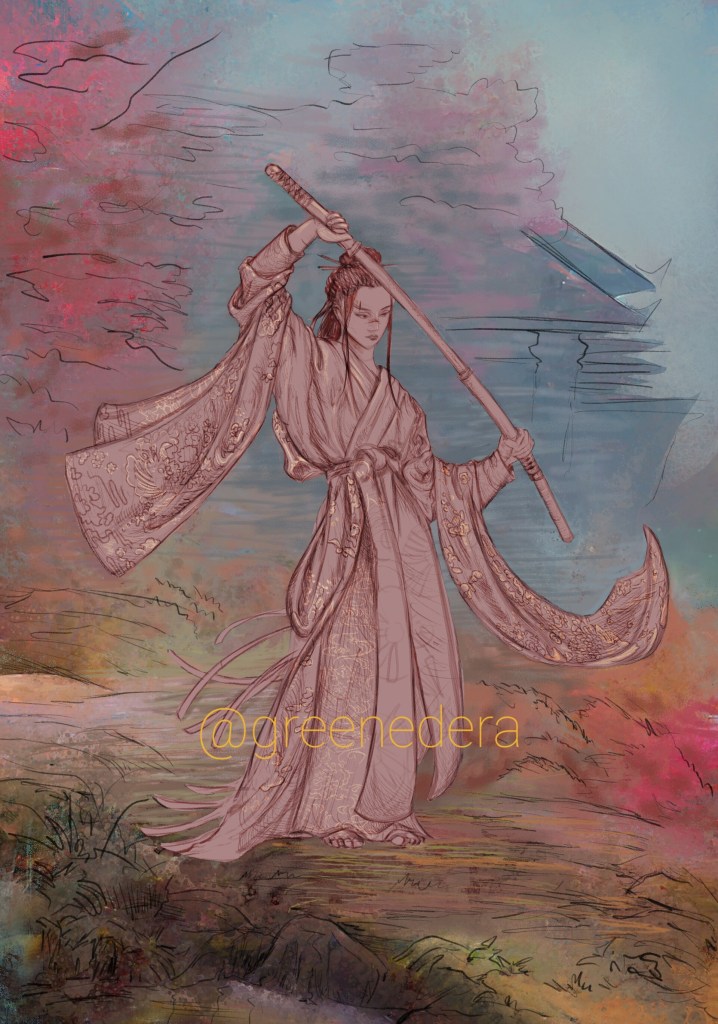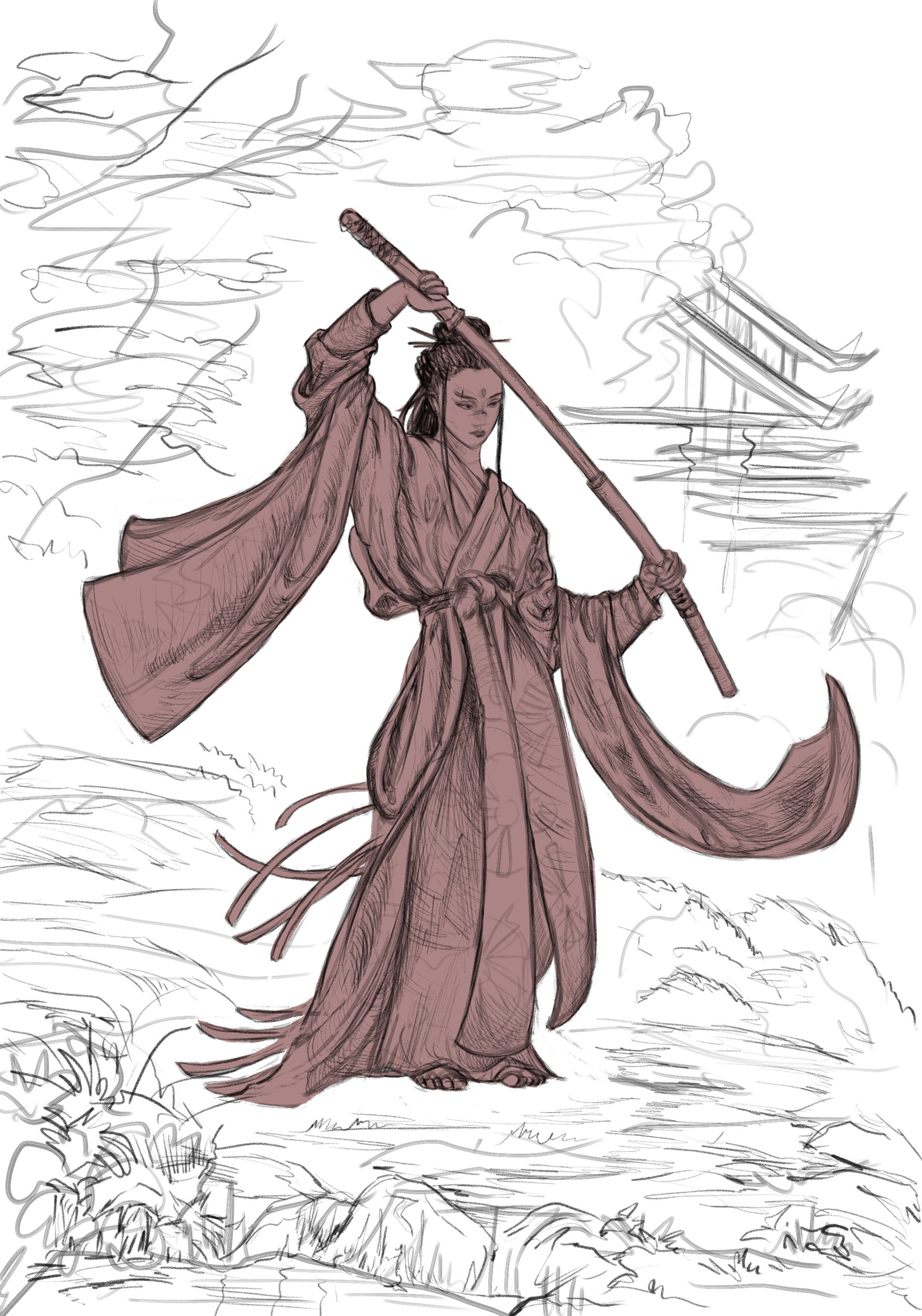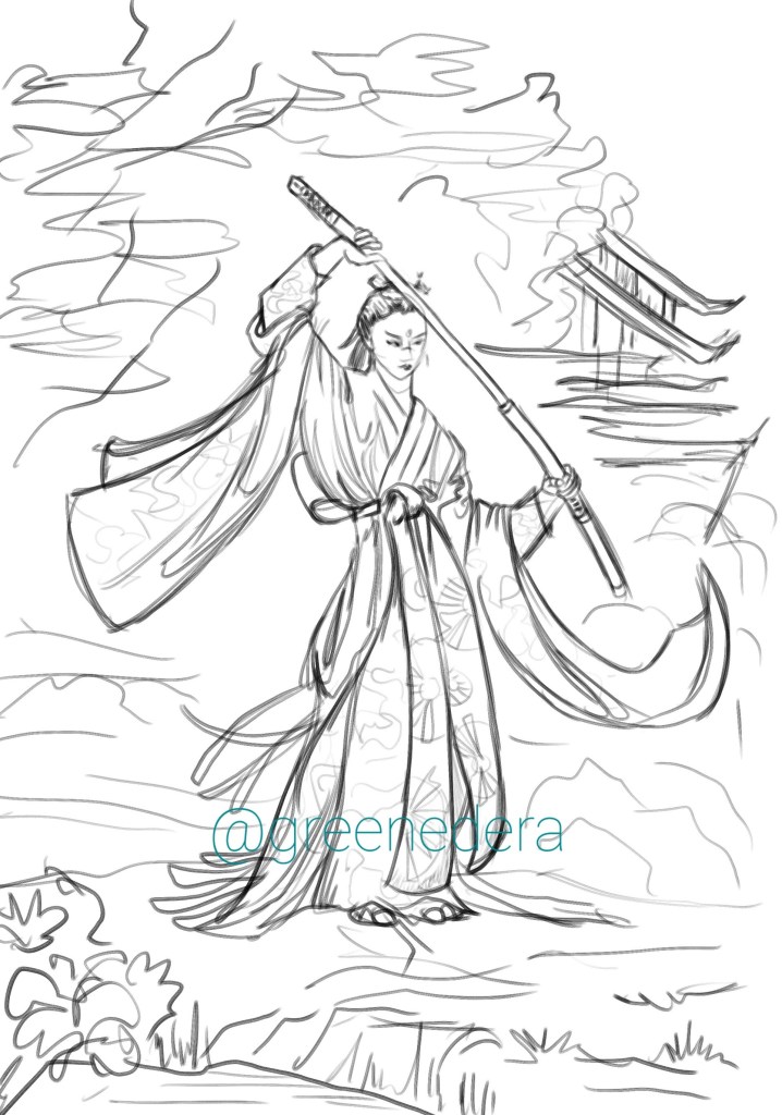 She would be absolutely gorgeous however her face has been cut up and stitched together so many times from the clan wars that she has a crooked smile. She was married at 14 widowed at 19 and now is 20 years old. She’s very strong and flexible for an Onna-bugeisha (female samurai), wearing a Kimono with odi. Miwa is a stern woman and was the judge and executioner on her husband’s lands. She is strictly lawful neutral. She’s also fairly intelligent but is unwise and often blurts out her perspective’s and never lies about it.