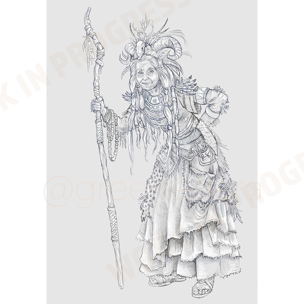 My artwork, “Nechtana the old druid”. This is a personal work, a portrait of my DnD character. Created while playing “The Wild Beyond the Witchlight” dnd5 adventure, which gives the players the chance to play the Fairy. Painted during March 2025.