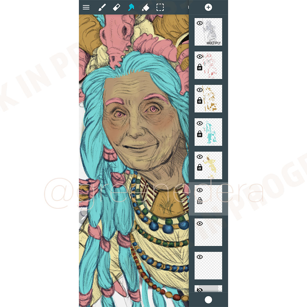A pencil sketch on A4 paper, turned detailed digital drawing, then colored in digital with a drawing app on my smartphone.