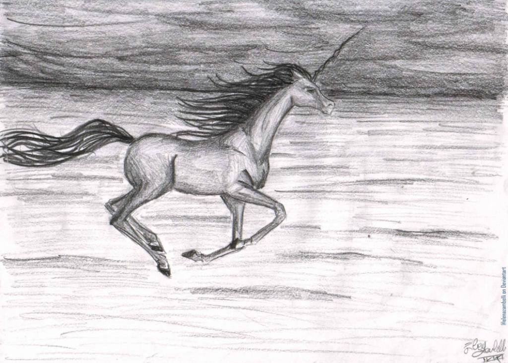 Grey unicorn – Grey unicorn running in the plains of despair. To easy to lost the way in the world outside home. Pencils, 2003
