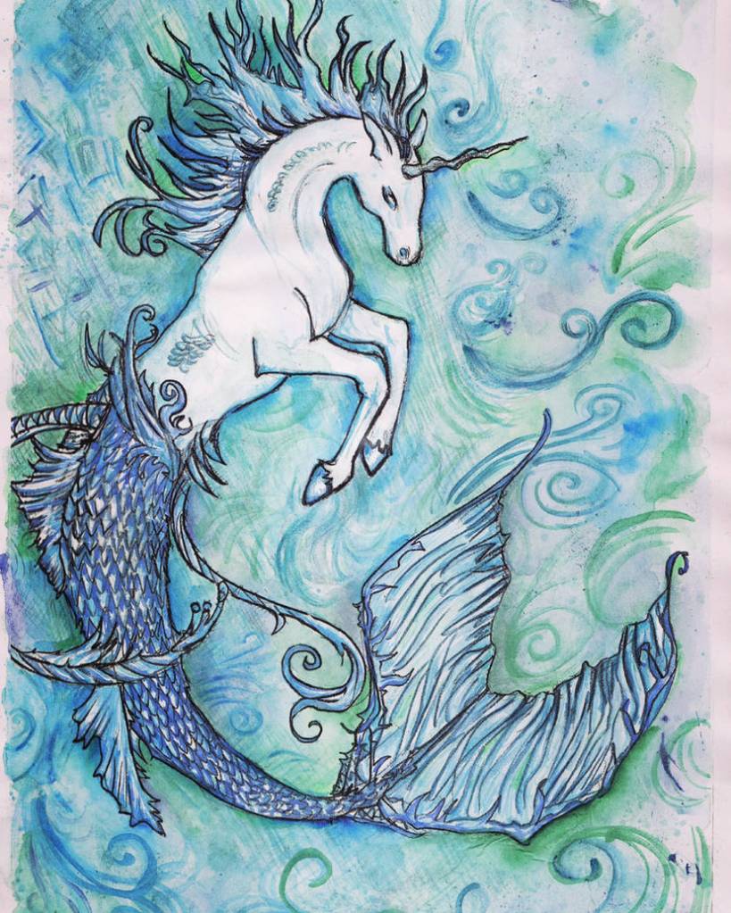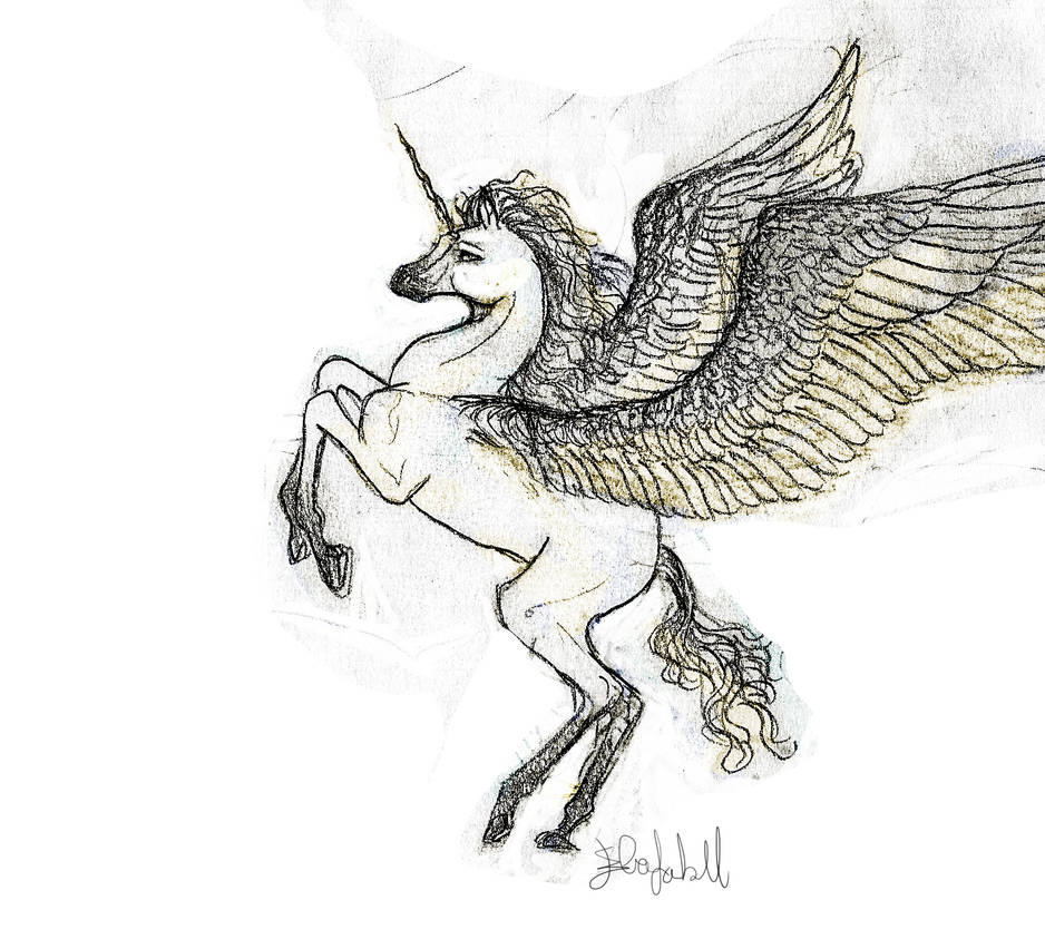 Various kind of unicorns, my obsession for many years. Pencil sketches, colored pencils, watercolors, 2004-2008.