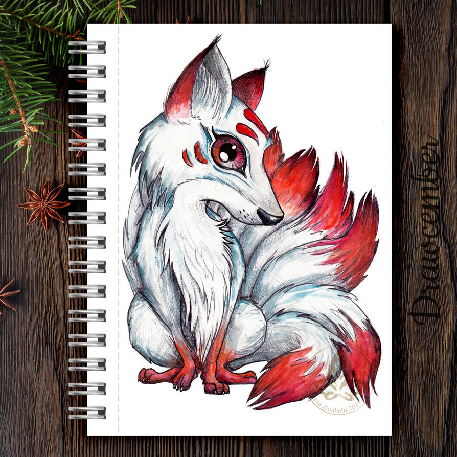 - The Kitsune is a magical fox from Japanese mythology, clever and powerful, which on certain occasions is represented as a nine-tailed fox, with brown or white and red fur.
