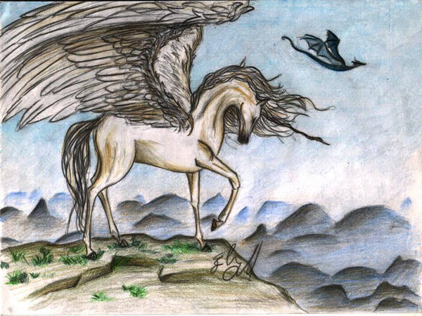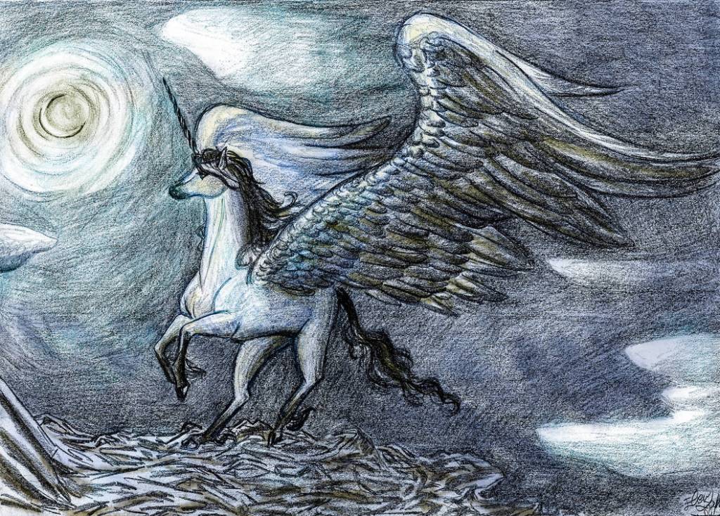 Little pretty pegasus dare to flight in the night, toward the unknown. Pencils, 2004