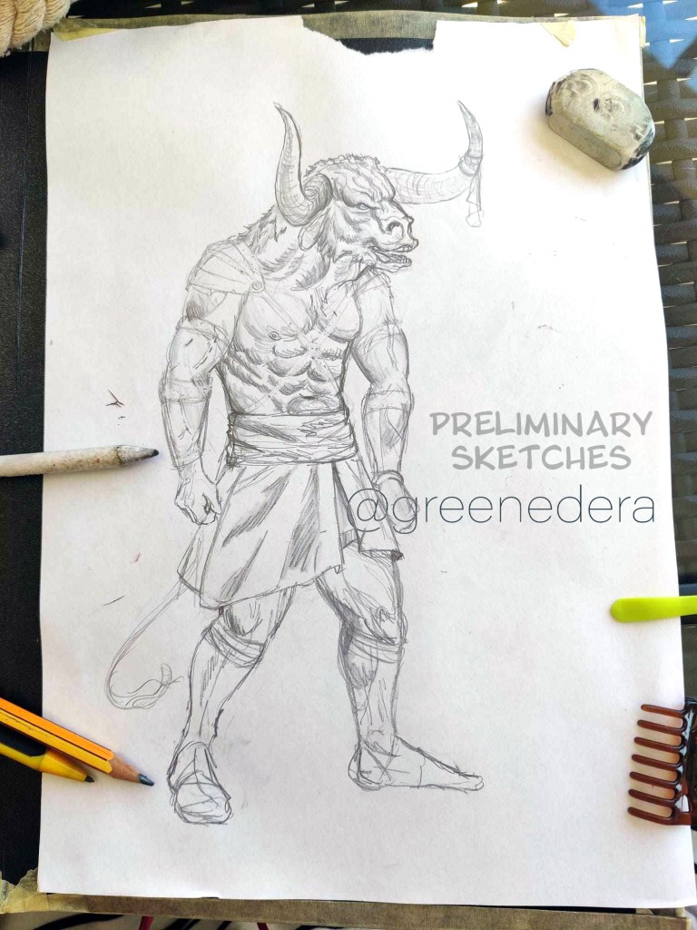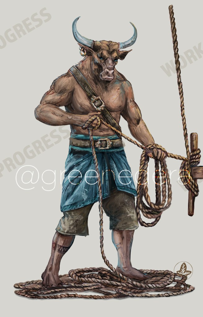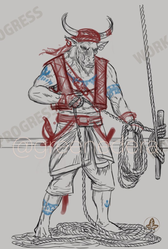 Illustration of a minotaur sailor (Dragonlance fandom). Commissioned by the Dragonlance Nexus as internal illustration for the adventure manual “The Journals of Kaz the Minotaur – The lost colony” featuring a novel by Richard Knaak and a D&D 5th ed adventure.