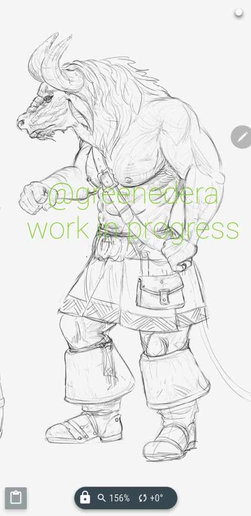 When doing preliminary studies on minotaurs in fantasy art, I noticed that some depictions have feet and others have hooves; but the Dragonlance minotaurs in canon paintings have feet. I checked with the DL Nexus team and R. Knaak, confirming this canon choice, and honestly, it makes perfect sense.
