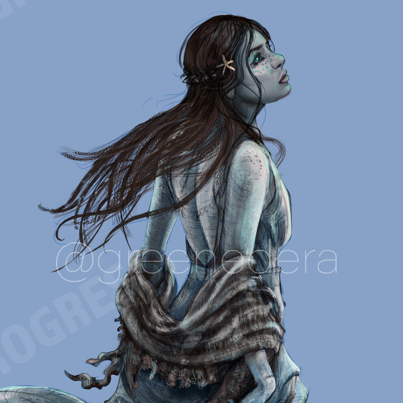 Illustration of Solace, a selkie character for a private roleplaying campaign.