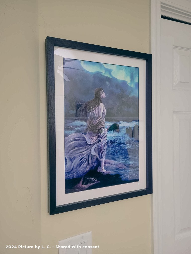 For me, a print is a more than just a final stage for a digital painting. In some ways, the final stage is the digital one, and the print is… like it ascends to paradise, or something like that. It means the painting is so loved, it becomes something more, a part of your home, a part of your life. For this reason, I’m so glad when people show me their prints: it’s like a super fullfillment for my little painting. – Elena