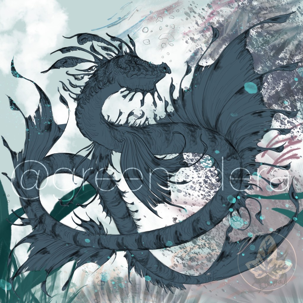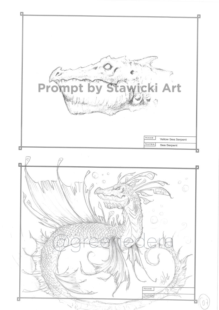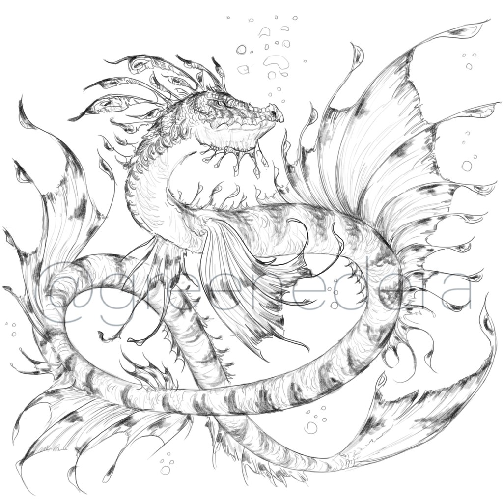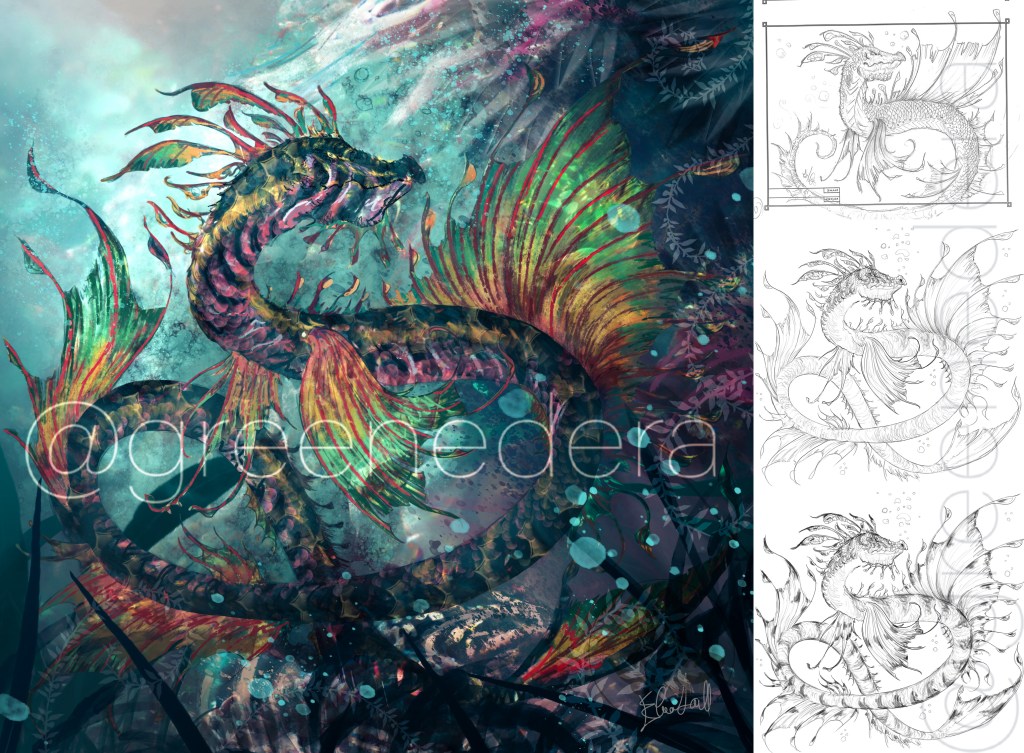 The “Skerry reef drake”- A draft illustration (pencil, photoshop, Cintiq) painted on January 7, 2023 during the “Dragonary challenge.”