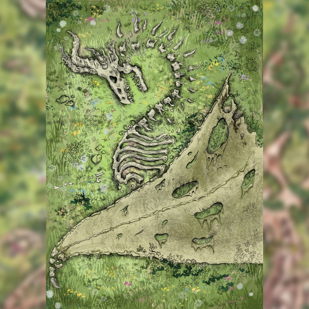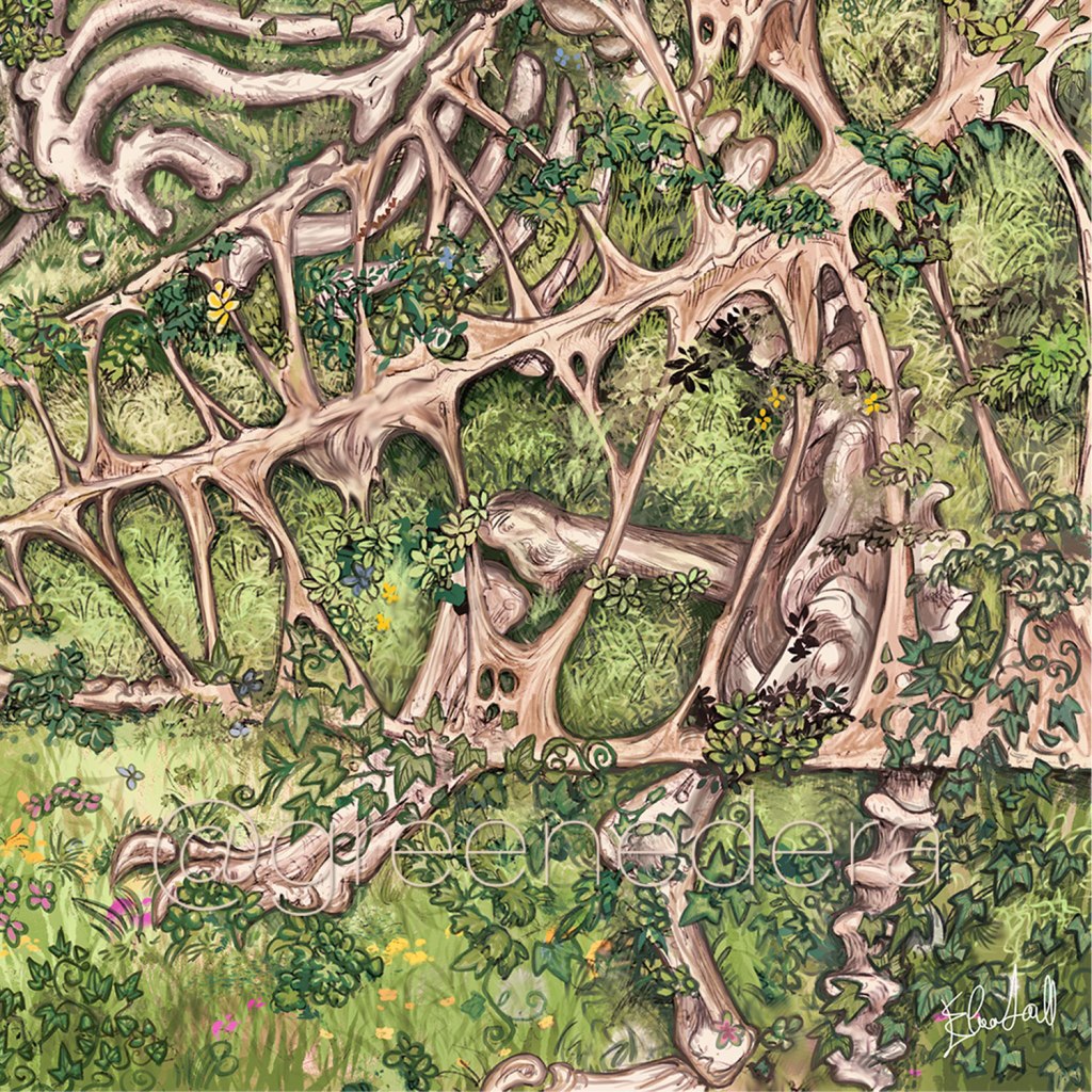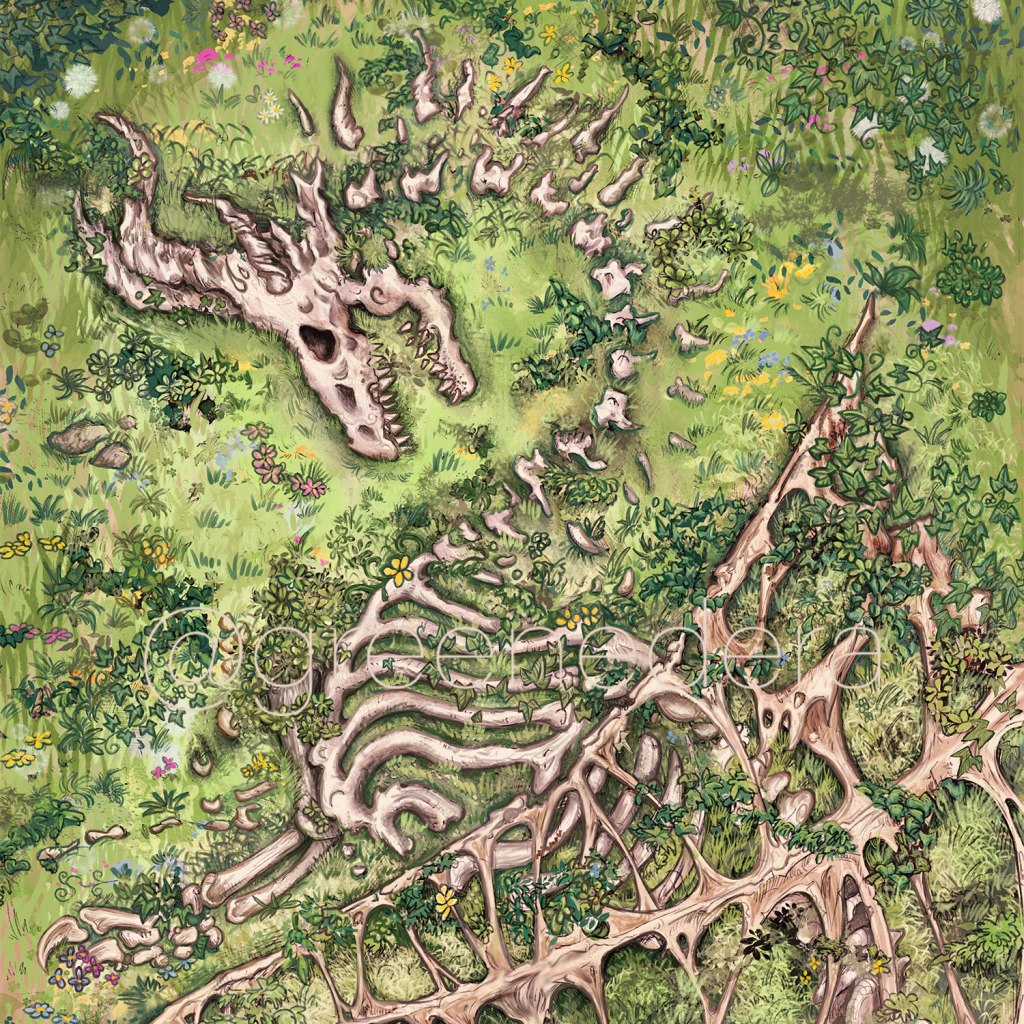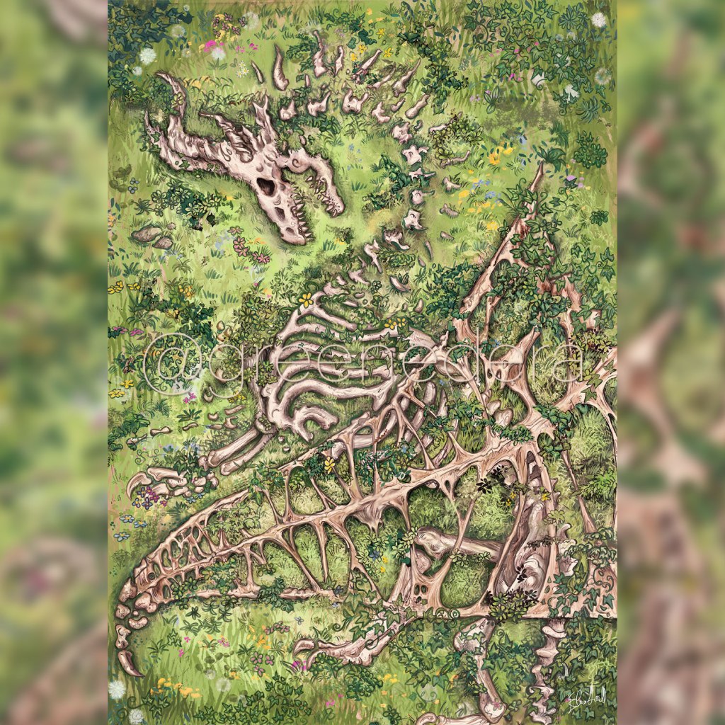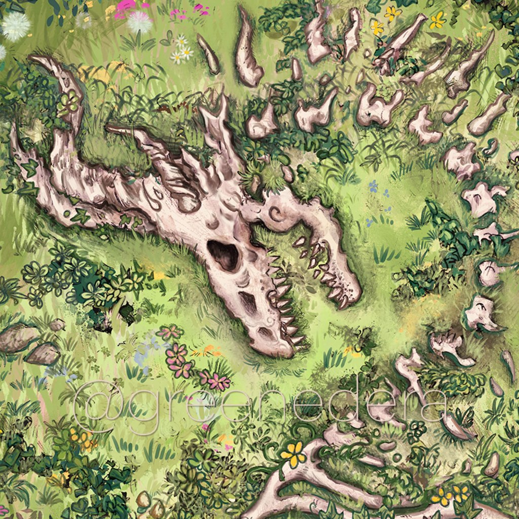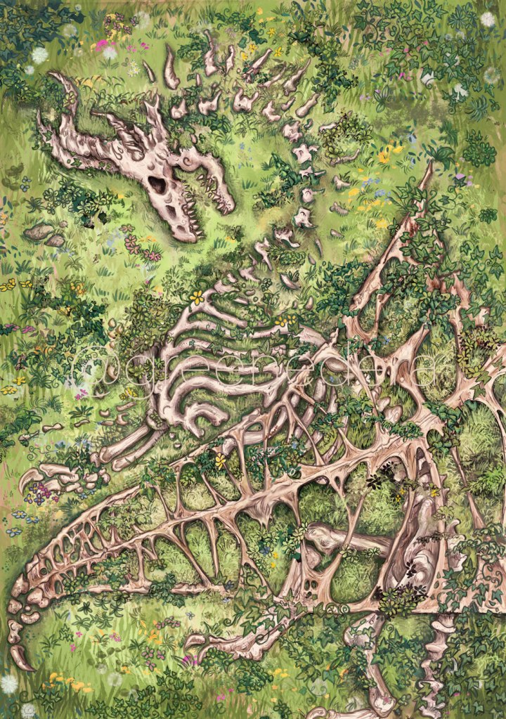 “Spring,” my digital painting of… flowers, grass, ivy and a dragon long gone.