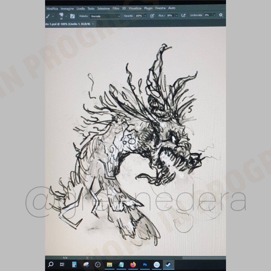 For now, some practice. Sketching here and there, a dragon and something else passing by and saying hello.