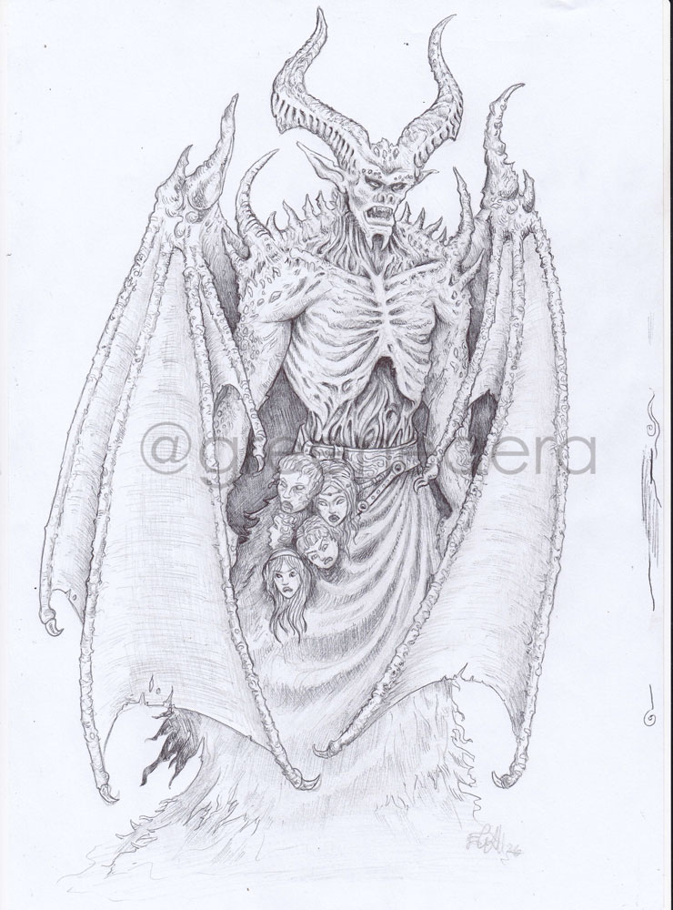 Fade stands at the bow of the small craft with a giant beside her. The diminutive drow elf looks up at her companion with a bit of wonder. He is a Huge Pit Fiend with wide wings tucked around his back to give her some room to see the ominous fortress coming into view upriver. His midsection is ripped open and hollow of organs. His ribs show in some places where a fallen angel struck him years ago leaving a wound that will not heal. He is Bel, Lord of the first plane of hell. Some call him the pretender because of his defeat of his former predecessor and lover, Zariel.