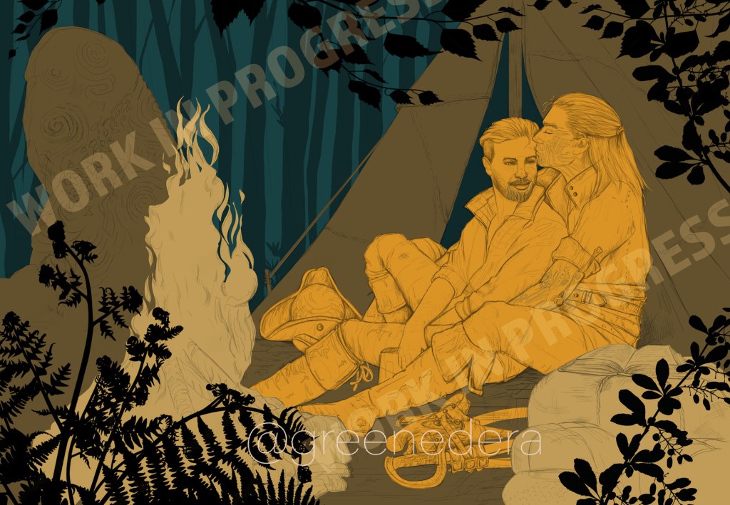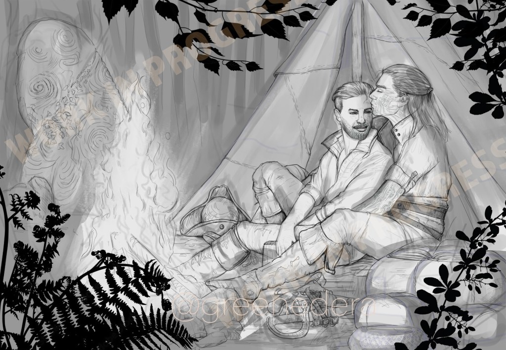 Kelly is a wonderful character; it’s not so easy to make him smile, but when it happens, his piercing blue eyes show all the beauty of his soul. His hands are streaked black: he’s researching Teer Fradee magic, taking notes in his book, and further he goes, that strange corruption seems to grow more.