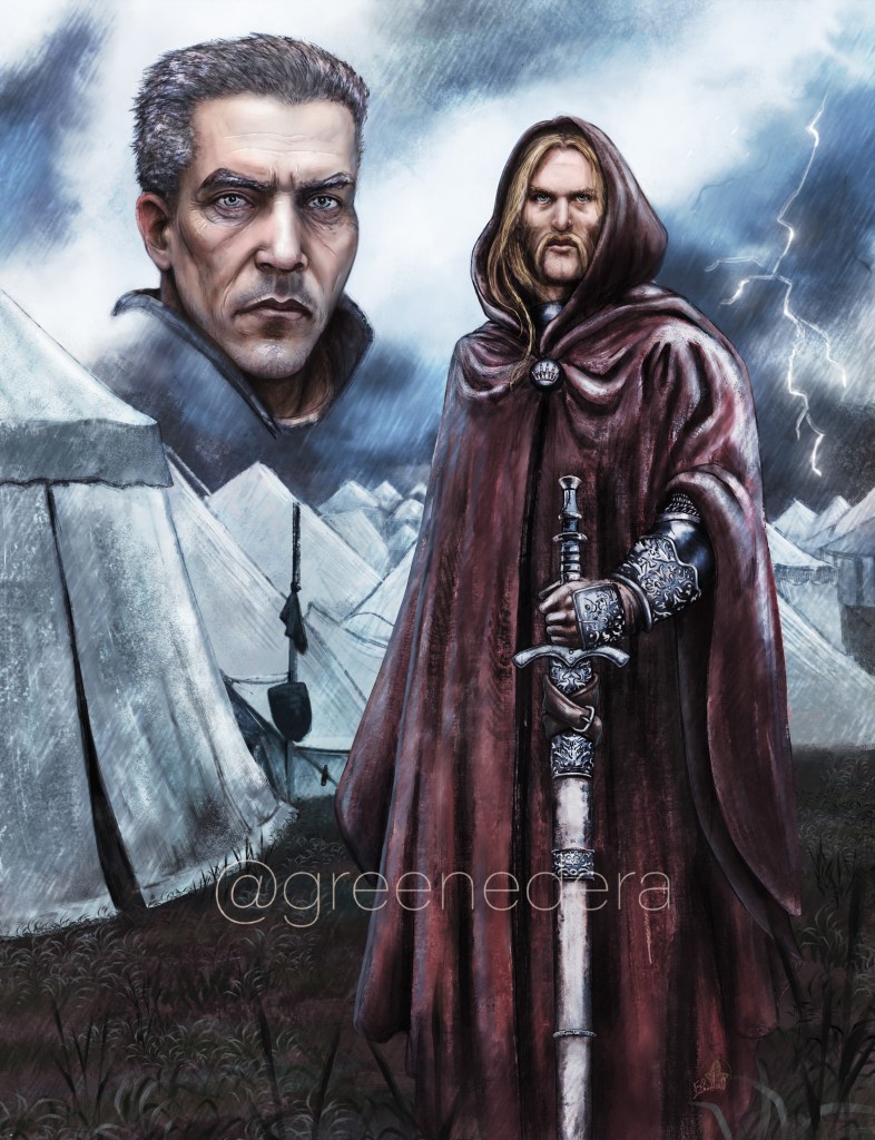 Huma, a young knight of Solamnia eager for prowess and still unaware of the glorious destiny that awaits him, takes his guard duty on a miserable, rainy evening. Mud splashes on the gleaming armor and tents of the camp, but he carries out his duty without hesitation. Looming in the background there’s his uncle, sir Rennard.