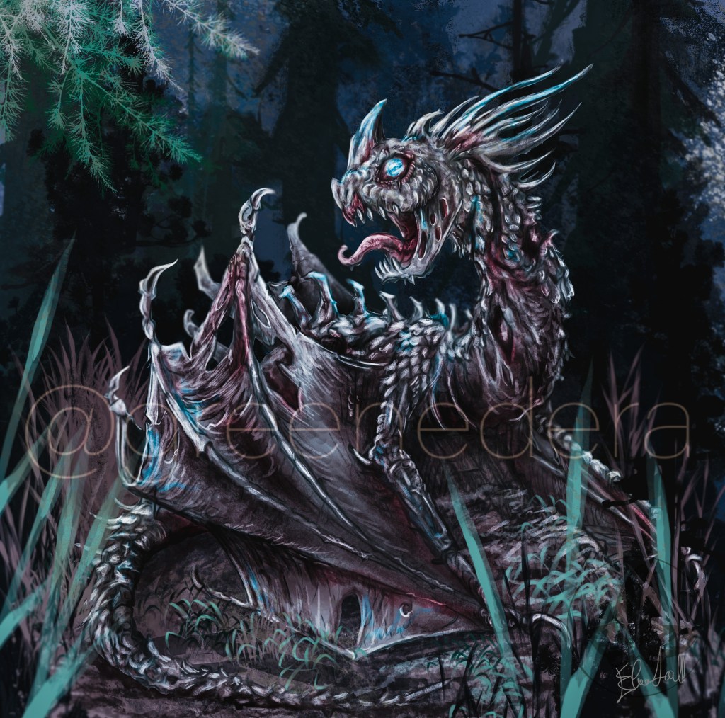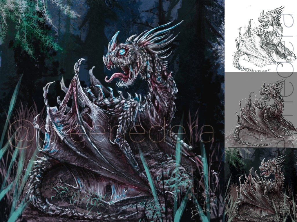 “Zombie dragon” – A draft illustration (pencil, photoshop, Cintiq) painted on January 17, 2023 during the “Dragonary challenge.”
