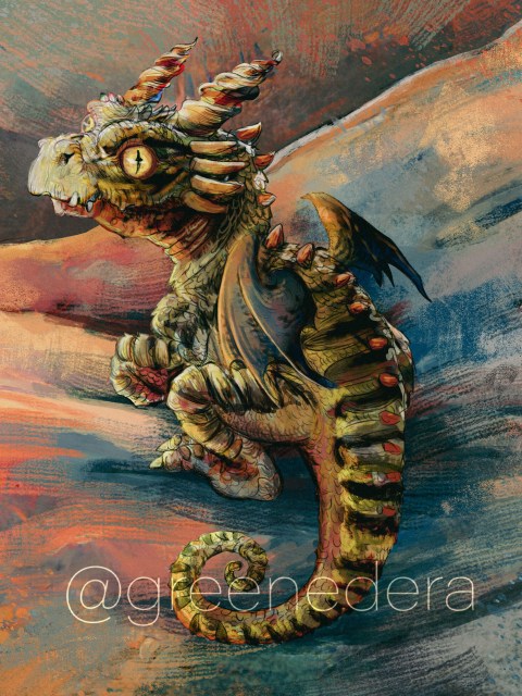 Dragon - Little wyvern "Little wyvern" - an original dragon created during the #dragonary month - thanks to @matthewstawicki for the inspiration digital painting, jan 2022, PSD for sale