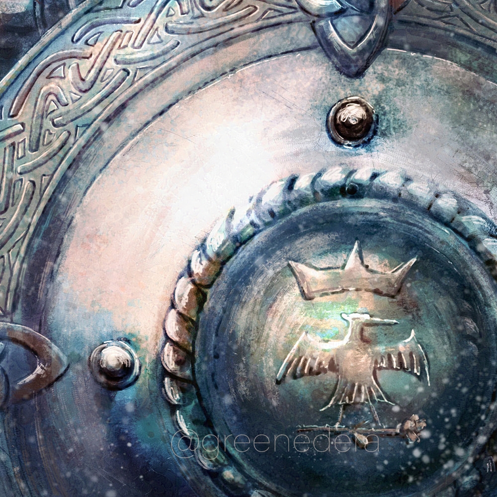 This moment has already been represented by the great Dragonlance painters and by many fanartists. I chose, in agreement with the client, a particular point of view. This is a close-up of Sturm as he is about to strike at his enemy. It is “that moment” of great courage, where the knight is literally staring his own death in his eyes, yet he challenges and conquers his own fear for the greater good.